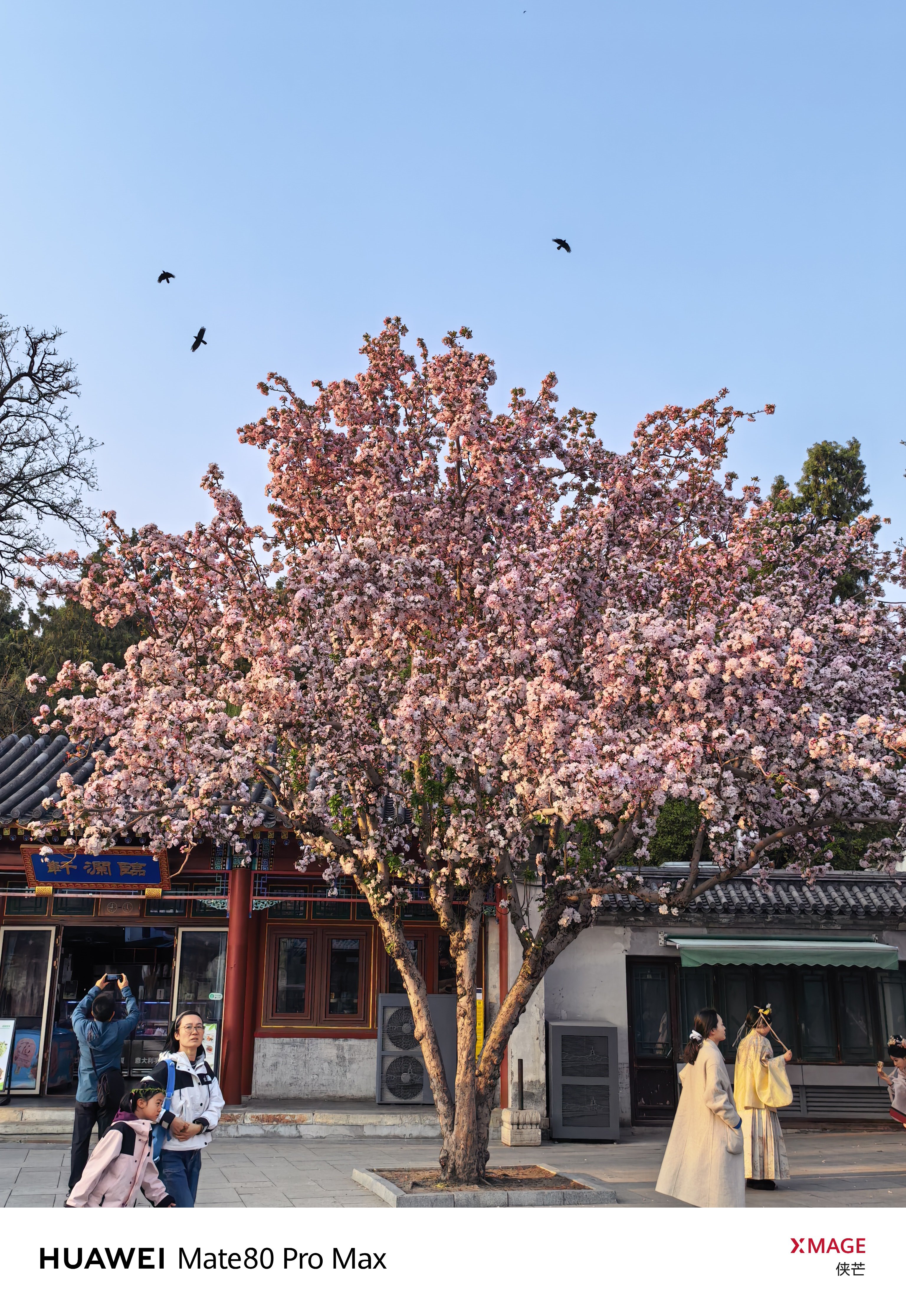 当海棠遇见北海,春天就有了具体的模样。粉花漫过檐角,白塔藏于林梢,落日为古建镀上金边,飞鸟掠过晴空。