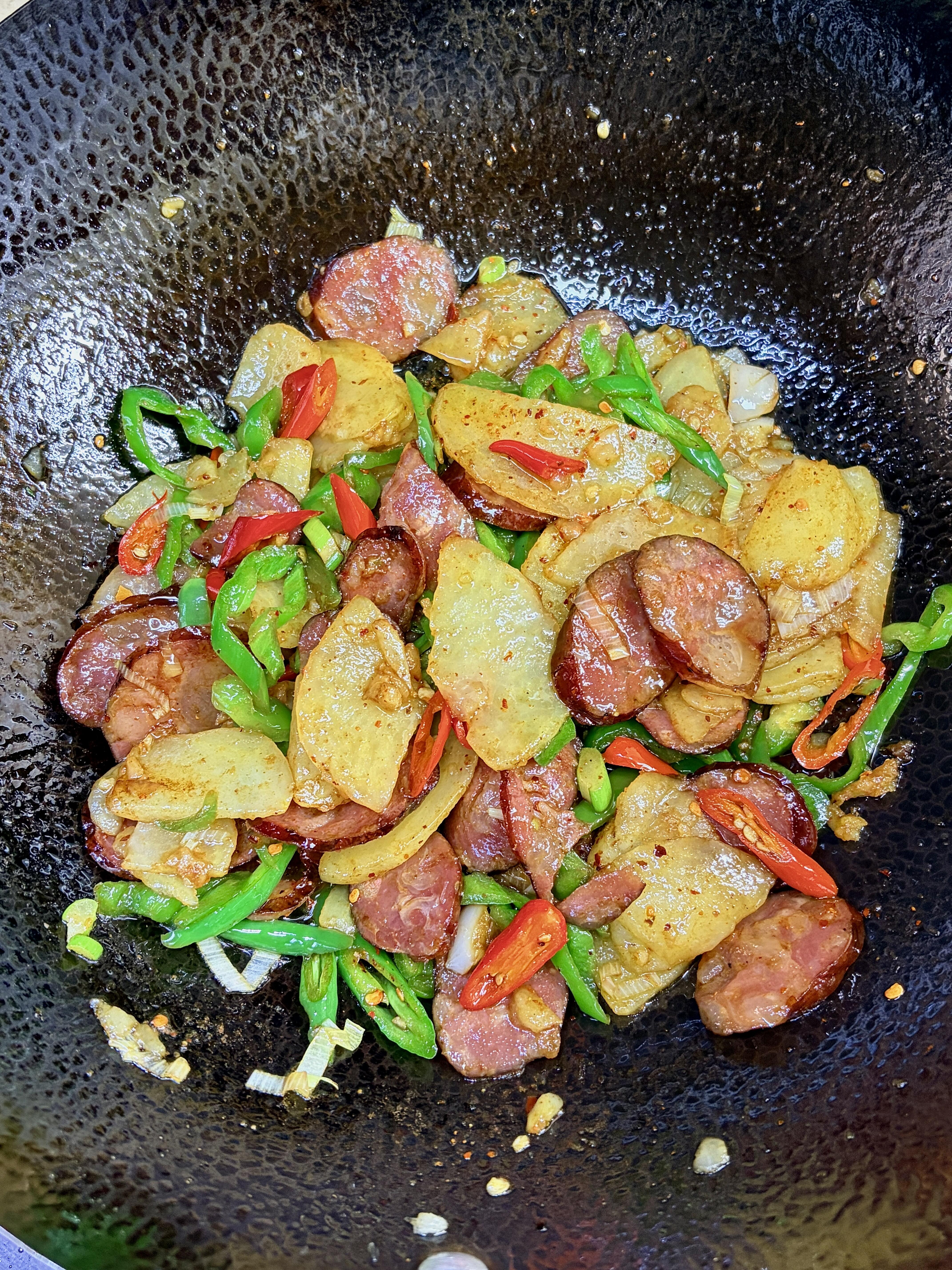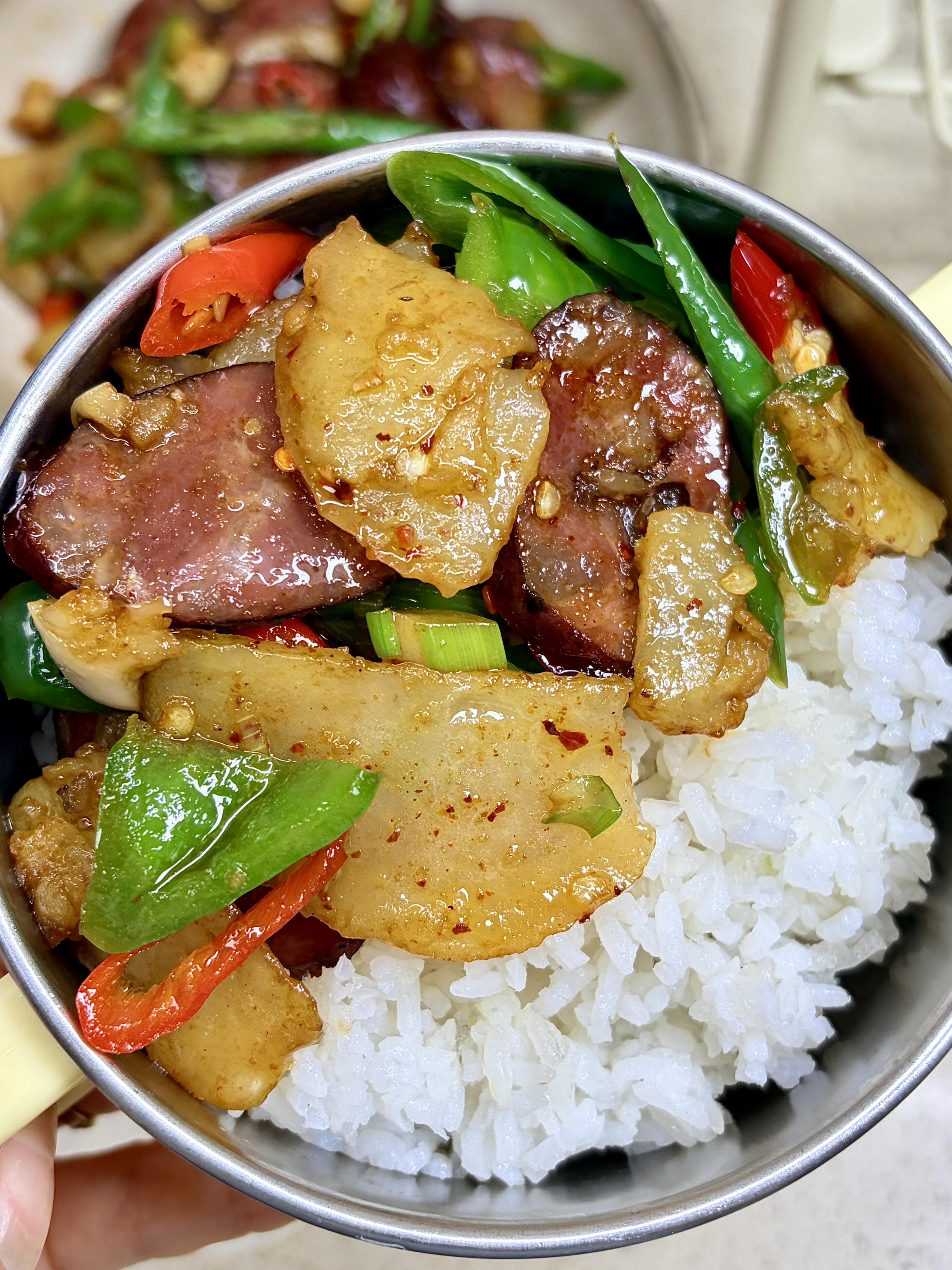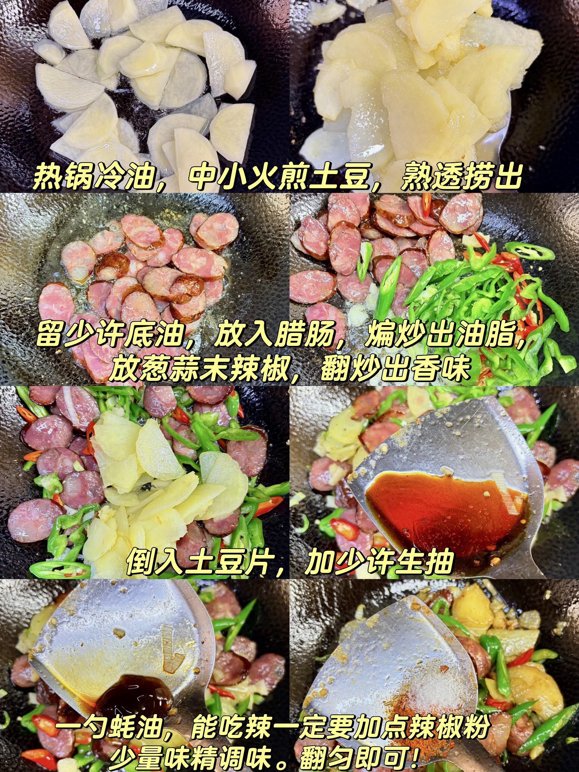 谁懂啊🔥腊肠土豆片封神!焦香糯嫩,配饭炫3碗 家人们谁懂这道家常菜的含金量啊😭 真的香迷糊了,一口就沦陷,再也忘不掉这个味道! 腊肠和土豆片真的是锁死的神仙搭配,谁搭谁好吃!焦香四溢的腊肠,油润不腻,裹着淡淡的肉香,搭配外焦里糯的土豆片,软嫩中带着焦脆,每一口都超有层次~ 配米饭真的能炫三大碗,香到停不下来,根本吃不够!重点是做法巨简单,下班回家几分钟就能搞定,不用费时间,上班族懒人直接狂喜👍 不用复杂调料,家常做法,新手也能零失败,端上桌分分钟被抢光,妥妥的下饭神器,赶紧收藏安排起来! 详细教程(跟着做不翻车,几分钟出锅): 1️⃣ 准备食材:腊肠切成均匀的薄片,土豆去皮切片,放入清水中浸泡(防止氧化发黑),青红椒切成长条,葱蒜切成末备用。 2️⃣ 热锅冷油,油温六成热时,转中小火放入土豆片,慢慢煎至两面金黄、完全熟透,煎好后捞出备用(煎的时候勤翻面,避免煎糊)。 3️⃣ 锅中留少许底油,放入腊肠片,中小火慢慢煸炒,煸出腊肠里的多余油脂,接着加入葱蒜末、青红椒条,大火快速翻炒,炒出浓郁香味。 4️⃣ 把煎好的土豆片倒回锅中,加入少许生抽提鲜、一勺蚝油增香,能吃辣的宝子可以加少许辣椒粉,再放少量味精调味,大火快速翻炒均匀,让每一片土豆和腊肠都裹满调料,即可出锅~ 做好的腊肠土豆片,焦香入味,腊肠油润不腻,土豆外焦里糯,配米饭真的绝了✨ 做法简单快手,下班回家几分钟就能搞定,再也不用为做饭发愁,赶紧动手试试!