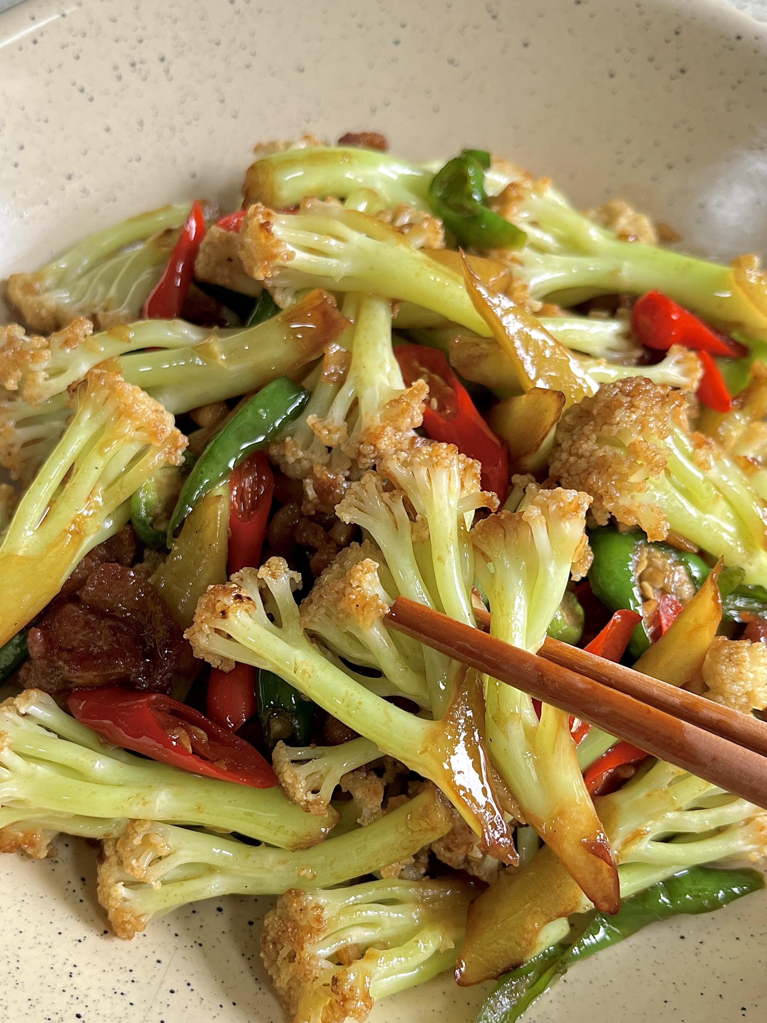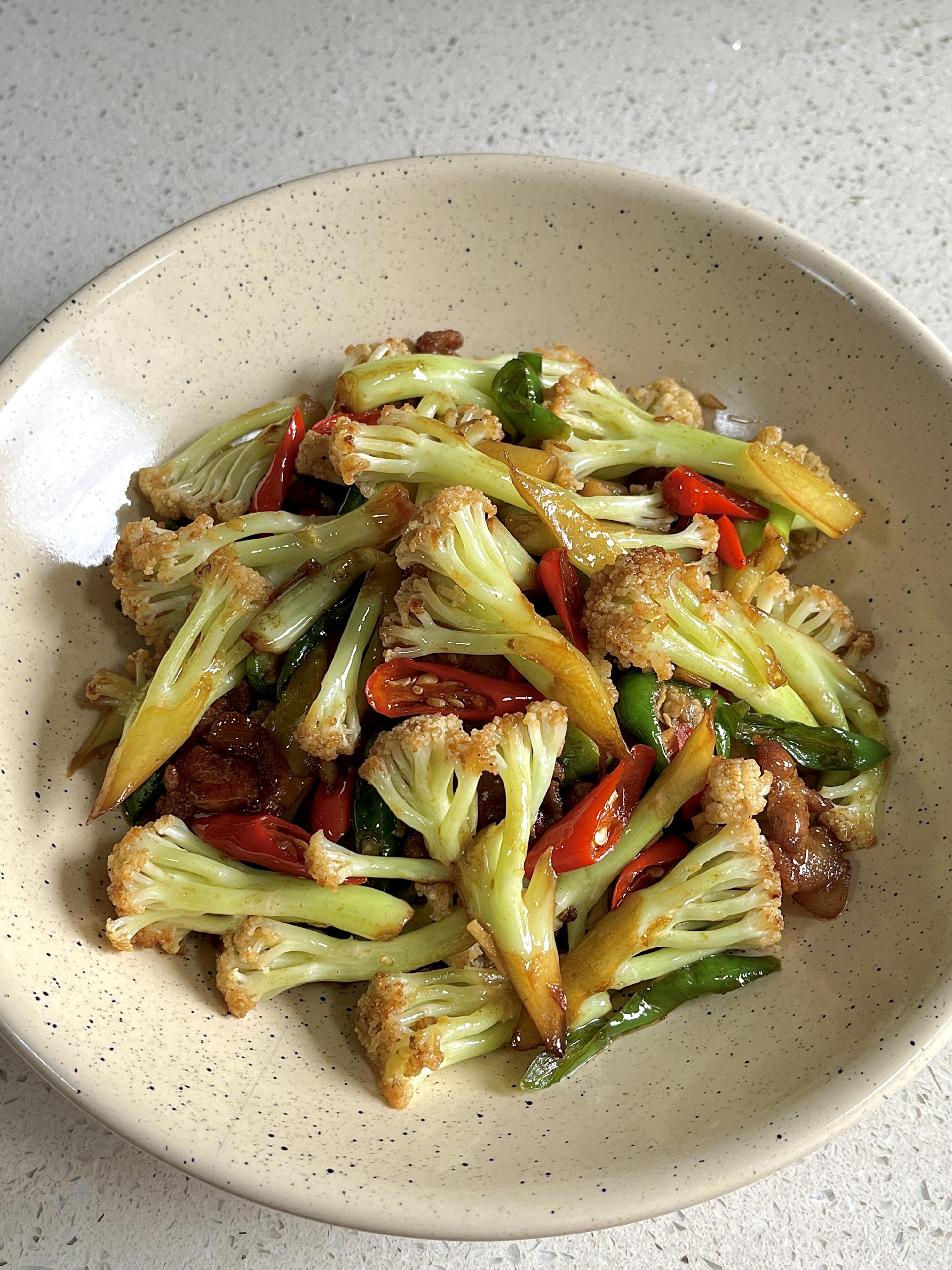 救命!干锅花菜太下饭🔥脆爽香辣,每次都多炫1碗饭 家人们谁懂啊😭 每次做这道干锅花菜,我都得特意多煮一碗饭,香到根本控制不住筷子,妥妥的下饭王者! 花菜脆爽不软烂,吸饱了浓郁的香辣酱汁,没有一点生涩感,每一口都脆嫩入味,香香辣辣的口感直戳味蕾,越吃越上头☺️ 不用复杂工序,家常做法,新手也能零失败,几分钟就能上桌,不管是工作日快手晚餐,还是家常便饭,这道菜都能轻松hold住,端上桌分分钟被抢光! 没有多余的废话,做法直接安排,跟着做不翻车,解锁这道超下饭的干锅花菜~ 🌟 详细做法(简单3步,新手也能会): 1、花菜洗净,掰成小朵,锅中放少许油,加入适量盐,放入花菜翻炒,炒至花菜表面微焦、断生,立刻盛出备用(炒至微焦,香味更浓,口感更脆)。 2、锅中不用再倒油,放入五花肉片,中小火慢慢煸炒,煸出五花肉里的多余油脂,接着放入蒜末、小米椒、青椒,大火快速翻炒,炒出浓郁的香辣味。 3、把刚才炒好的花菜倒回锅中,加入适量生抽提鲜、一勺蚝油增香,放少许鸡精、一点点白糖中和口感,再加少许老抽上色,大火快速翻炒均匀,让每一朵花菜都裹满调料,即可出锅! 做好的干锅花菜,脆爽入味、香香辣辣,没有一点多余的油腻感,配米饭真的绝了✨ 每次做都能多吃一碗饭,做法简单快手,赶紧动手试试,解锁家常下饭神器!