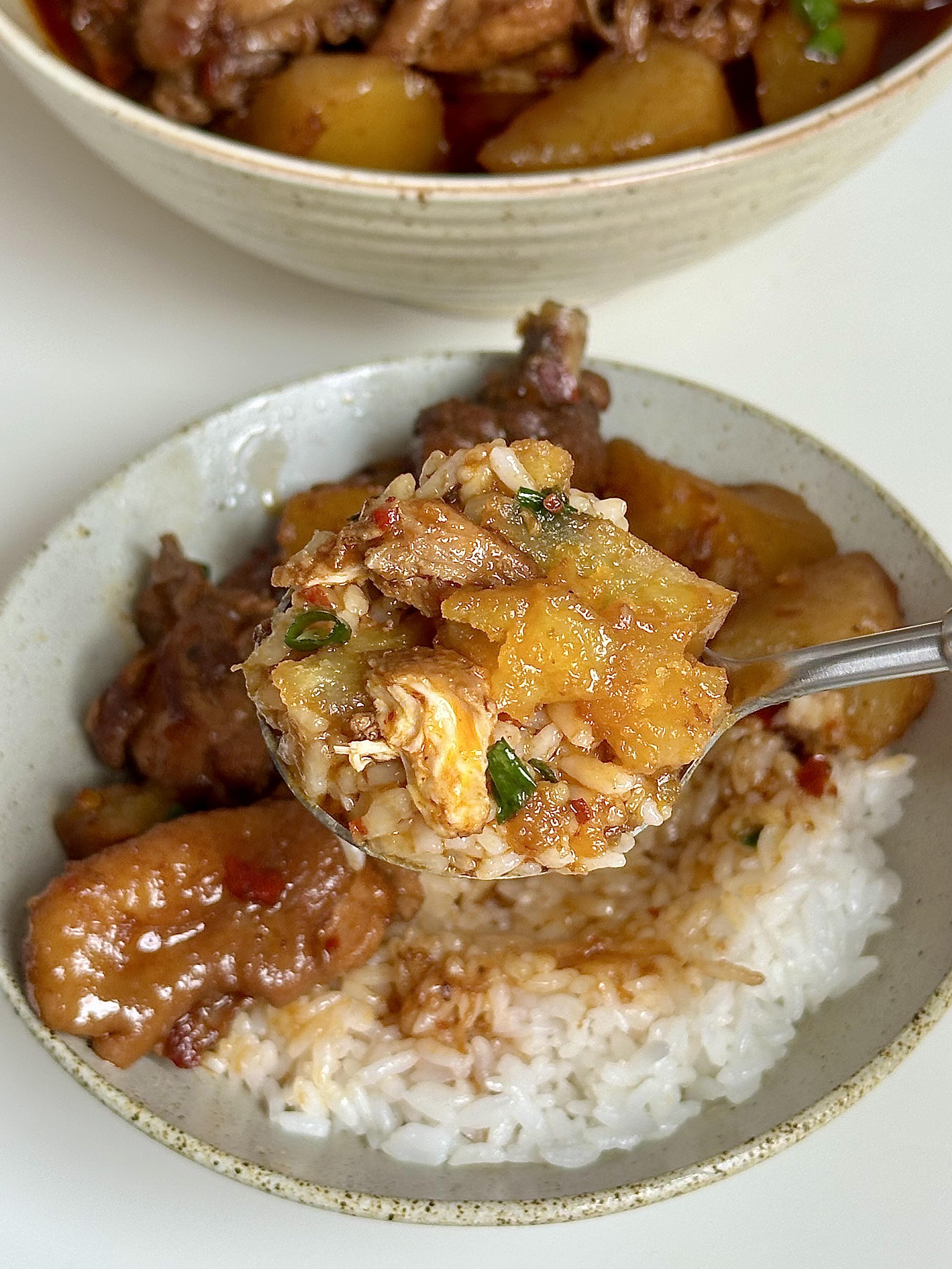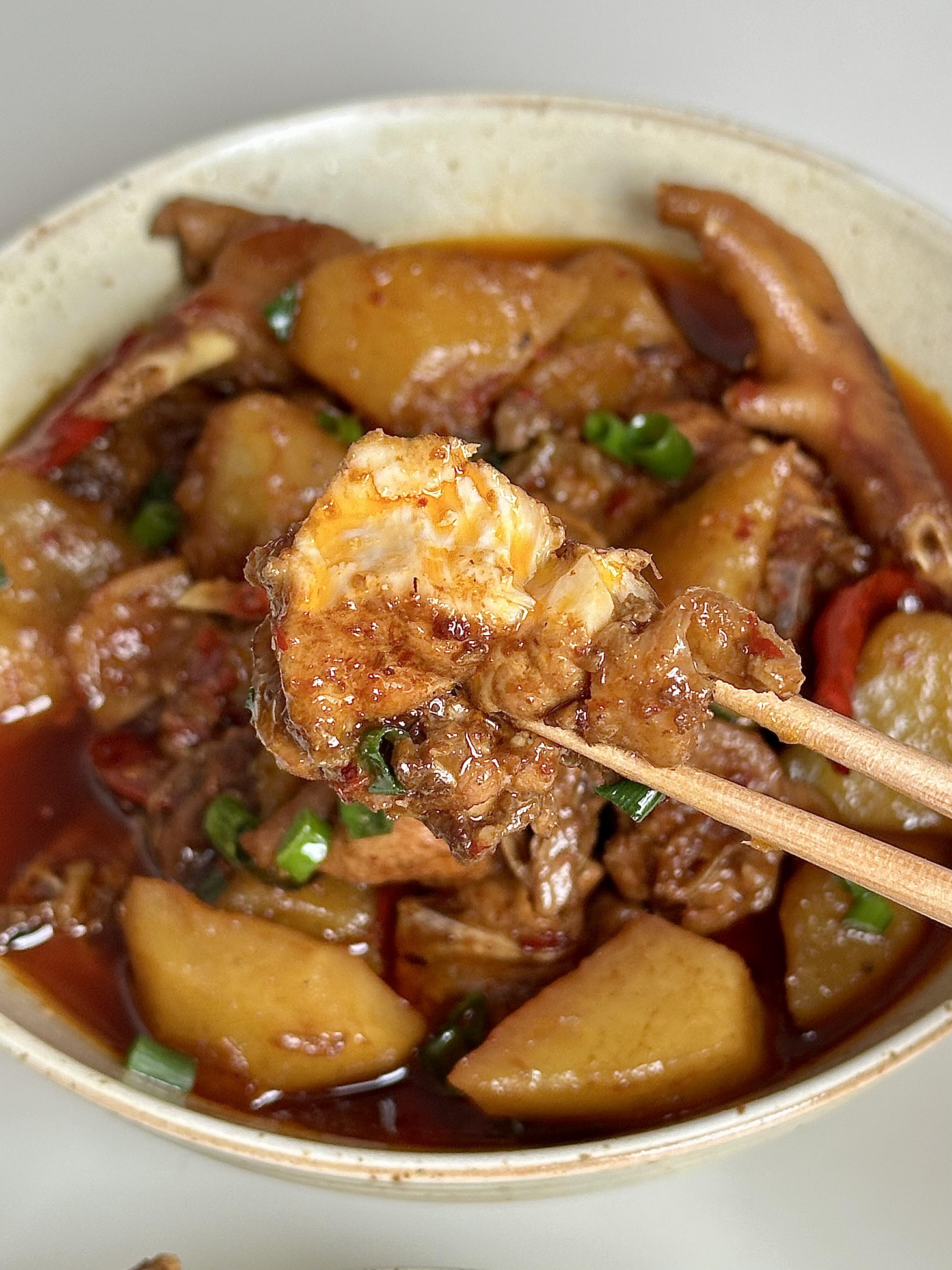 家常土豆烧鸡🥘吃这菜得多蒸半锅饭才够吃! 这道土豆烧鸡真的太香啦😋,土鸡肉炖到软烂,裹着浓郁酱汁,粉糯的土豆吸满汤汁,配米饭直接炫三碗!
