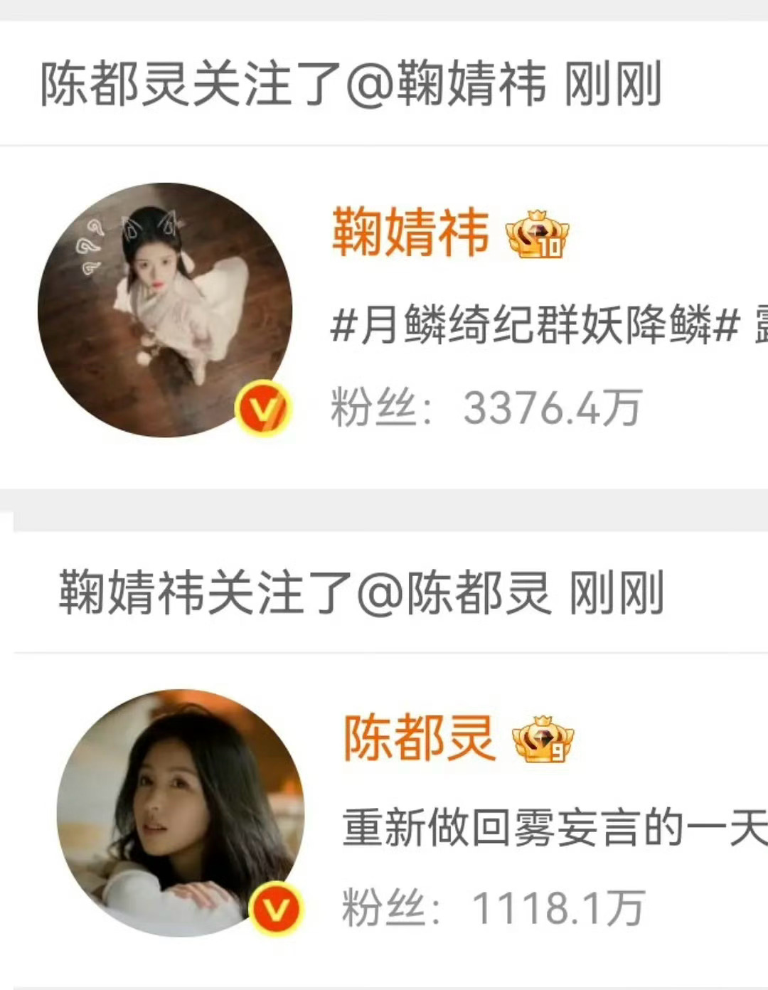 鞠婧祎陈都灵终于互关了鞠婧祎陈都灵才互关 鞠婧祎陈都灵才互关,今天剧宣的好