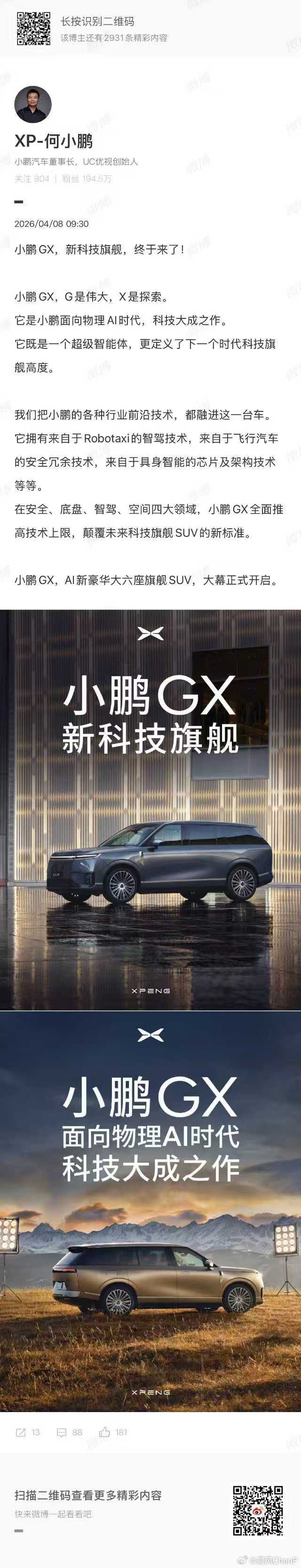 3000tops的真科技旗舰车型,小鹏GX来了智驾来自真robotaxi ,L4级别它的安全冗余设计来自小鹏的飞行汽车