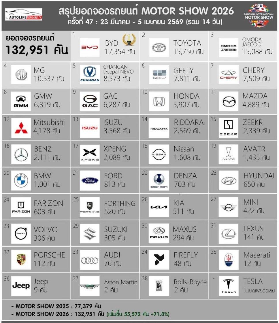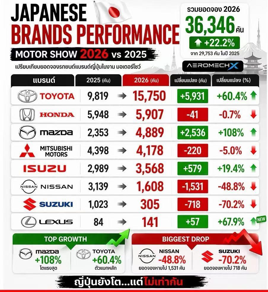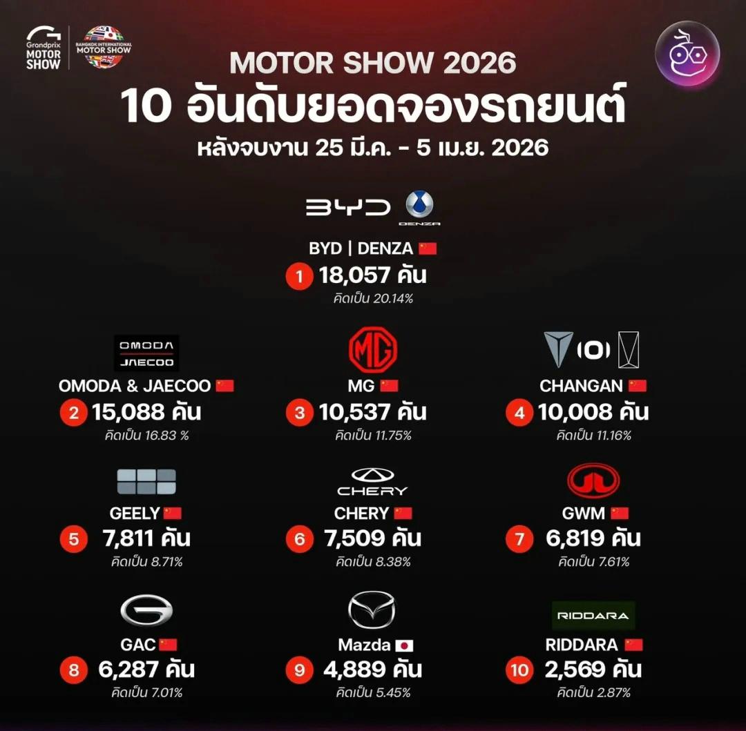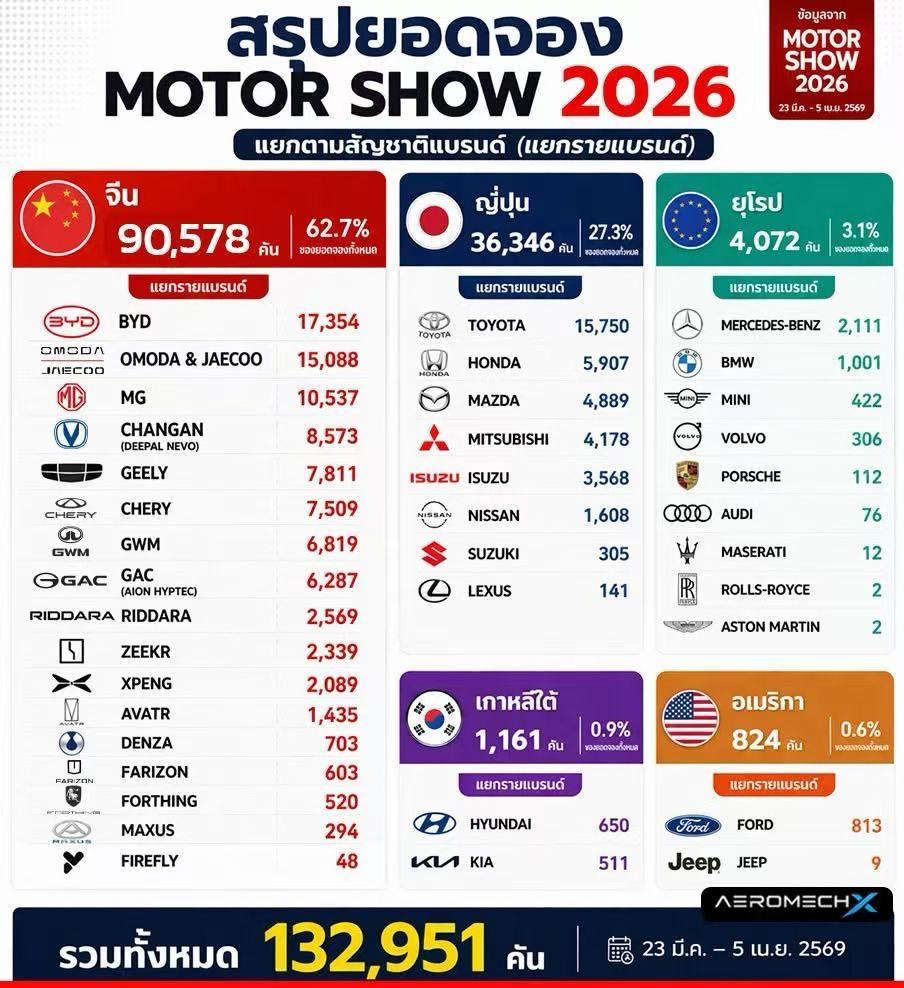 刚落幕的2026年曼谷国际车展,传来一个让全球汽车圈都不得不服的消息,中国品牌在日系车深耕了几十年的泰国市场,实现了历史性反超。全场13.3万个订单,中国车企就拿下了超9万辆,占比近七成,而日系品牌只拿到3.6万辆。