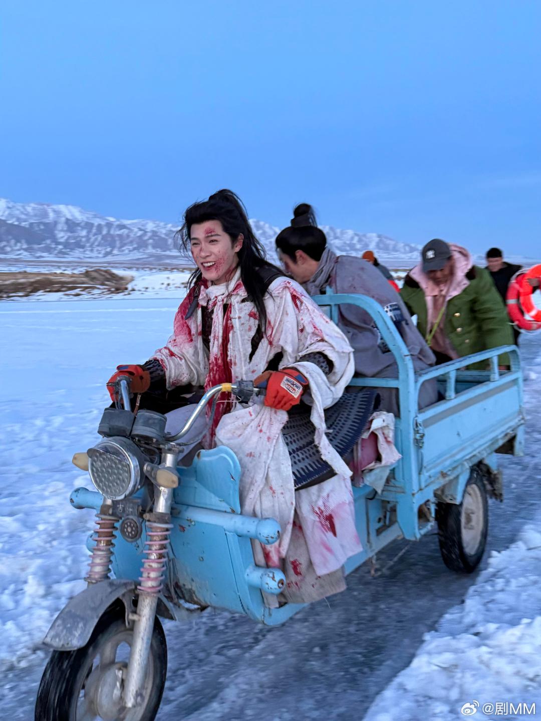 李昀锐战损妆自拍李昀锐晒出《冰湖重生》花絮照,有种我朋友当演员的赶脚。李昀锐古人骑三轮