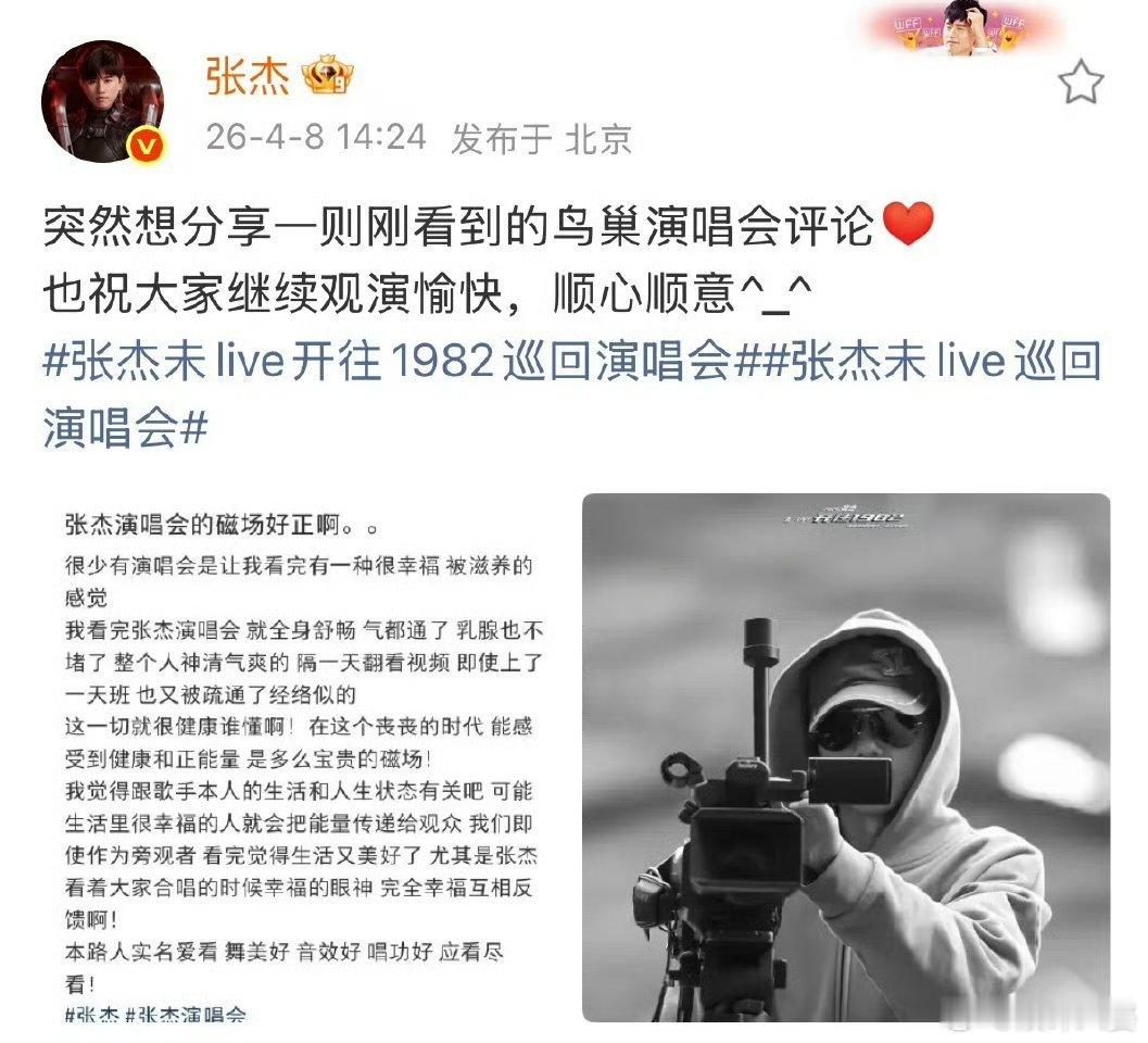 张杰晒粉丝对于演唱会的评论张杰演唱会现场直接封神🎤!粉丝评论全是真情实感,舞台炸场、歌声戳心,老歌一开口瞬间唤醒青春记忆,谁看了不喊一句“杰哥永远值得”✨,快来共赴这场音乐狂欢!