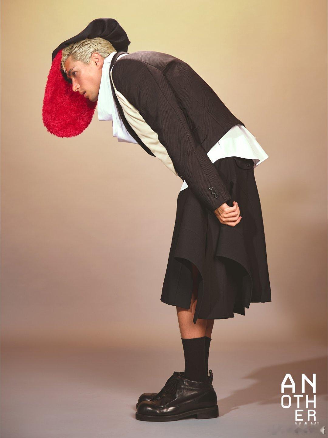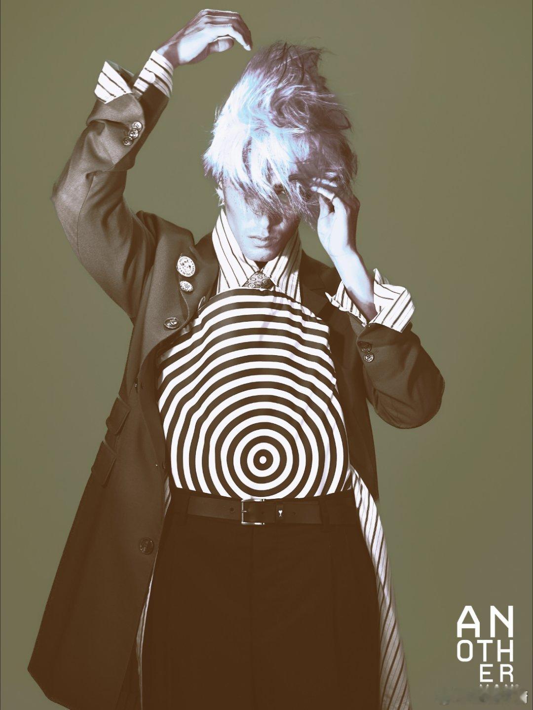 雨幕中扬起格纹伞角,鎏金风衣撕开晨昏交界,叛逆在水珠里跳踢踏舞。皮靴碾过黑白胶片,霓虹领结缠绕复古旋律,每个pose都是态度的标点符号。米卡AnotherMan开季封面