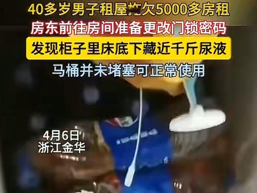 租客欠租5000,房东开门直接吐了!近千斤尿液堆满床底柜子,马桶却好好的! 浙