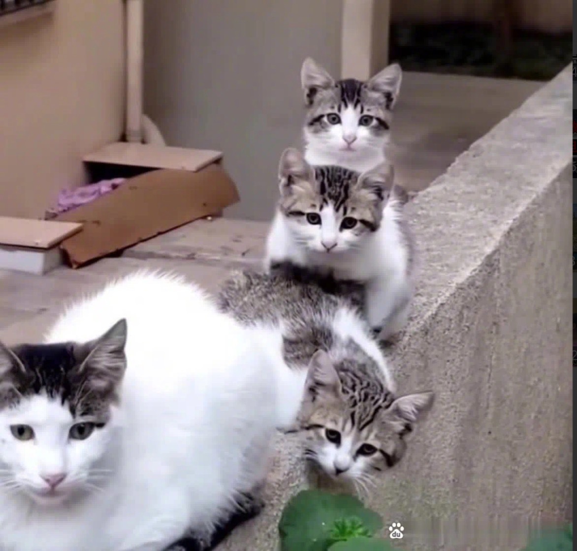 昨天有位网友给流浪猫妈妈喂食,第二天一大早,她惊喜地发现猫妈妈和她的三个孩子在等着她,这场景实在太让人感动、太令人喜爱了!