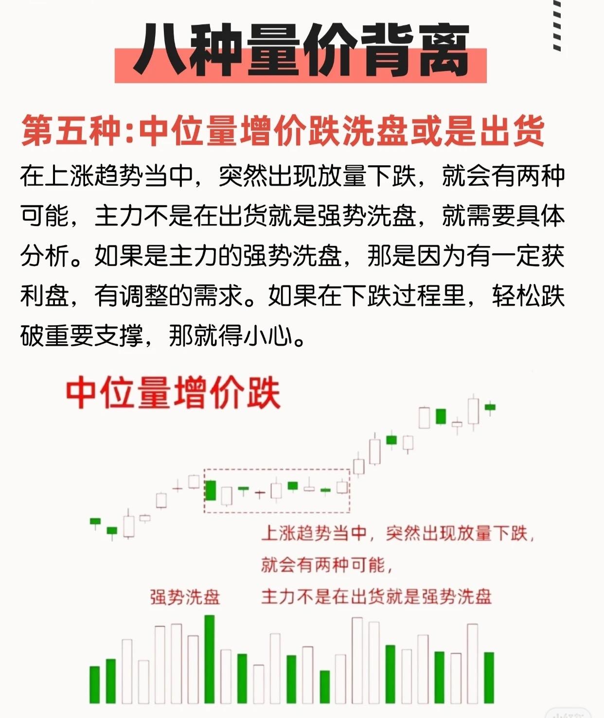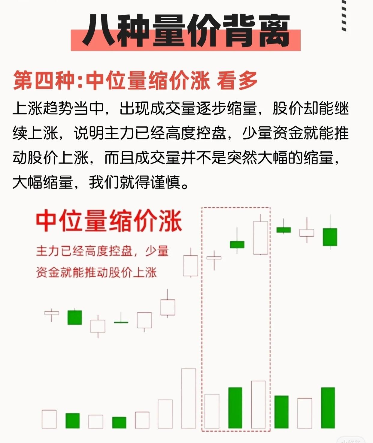 中位股处于上升中途,量价背离反映主力控盘度或“洗盘/出货”的分歧,核心是“看趋势、辨量能”。