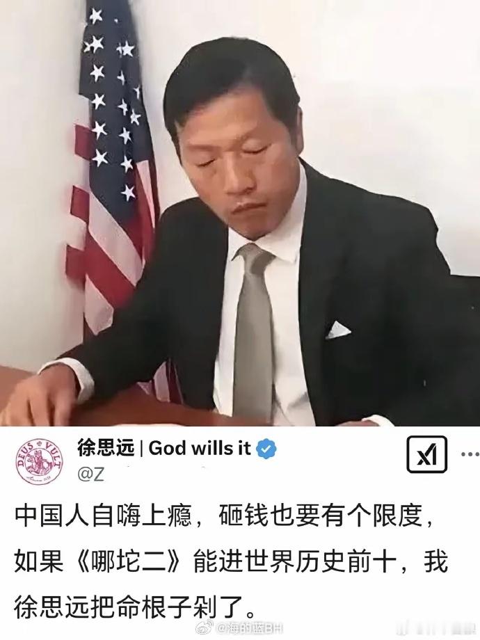 哪吒2票房升至全球第4润人徐思远曾宣称:如果《哪吒2》能进前十,他将亲手剁了自己的命根子。会剁自己的命根子吗?