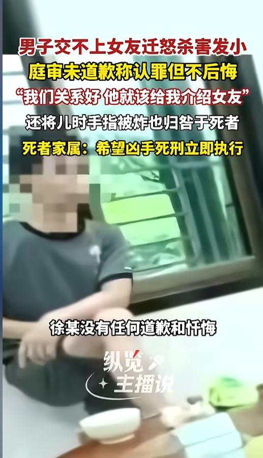 信息来源:《31岁男子被发小杀害案一审未当庭宣判。凶手没有道歉、毫无悔意,称认罪但不后悔。》纵览新闻