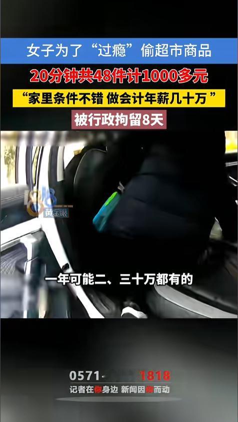 信息来源:《女子为了“过瘾”偷超市商品,20分钟共48件计1000多元,“家里条件不错,做会计年薪几十万 ”,被行政拘留8天》1818黄金眼