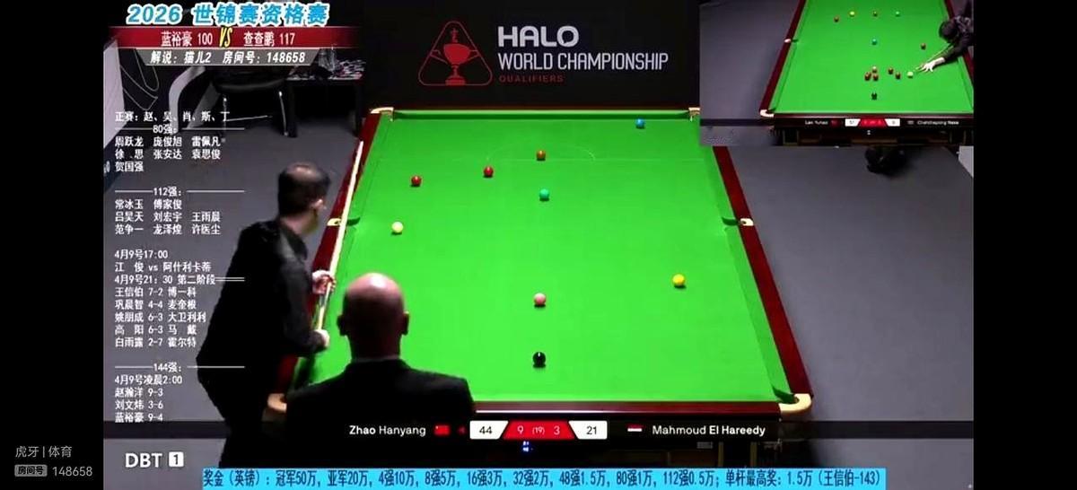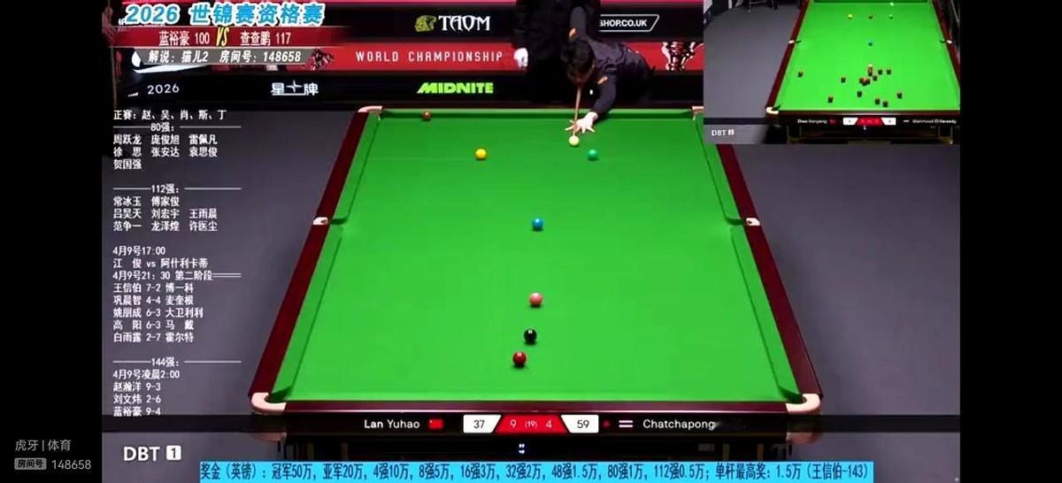 当时台面清爽,彩球全在点位,只要稳住那颗红球,满分杆就到手了。