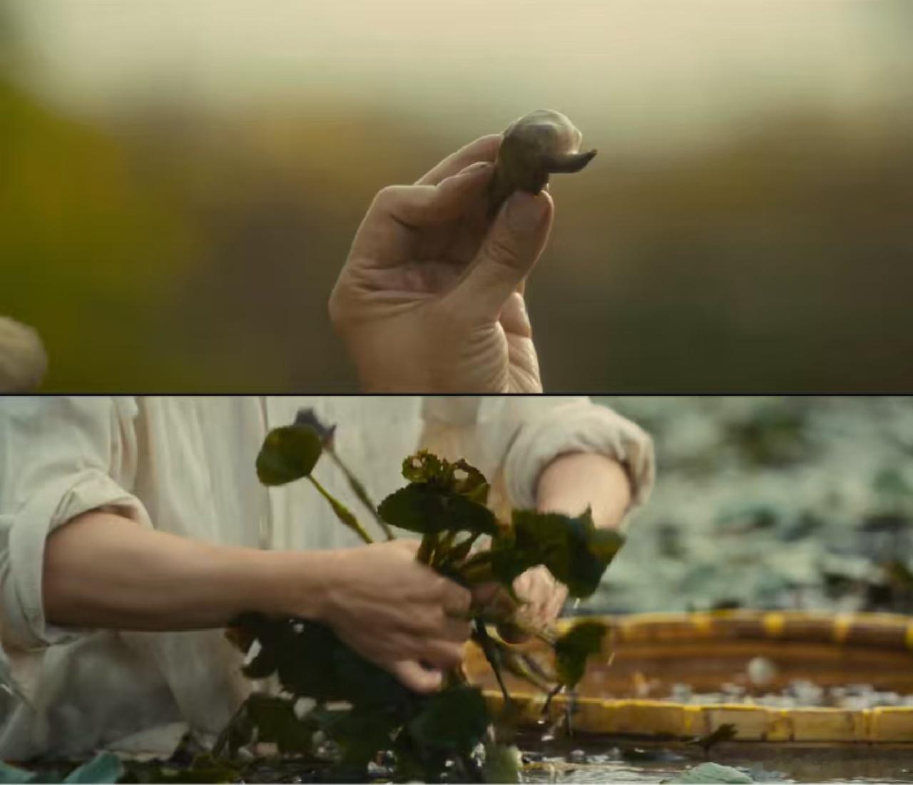 前四集中有几个画面令人印象极深:白家庄战斗:鲜血滴落在白色棉花上的意象,残酷又唯美。这个画面是如何构思的?平行蒙太奇:淞沪会战炮轰城市(残酷)与孟万福在池塘摘菱角(美好)交替进行。这种强烈的对比想传达什么?战壕思乡:天上明月与地下泥泞战壕,歌谣响起。如何想到用这样的画面来表现思乡之情?
