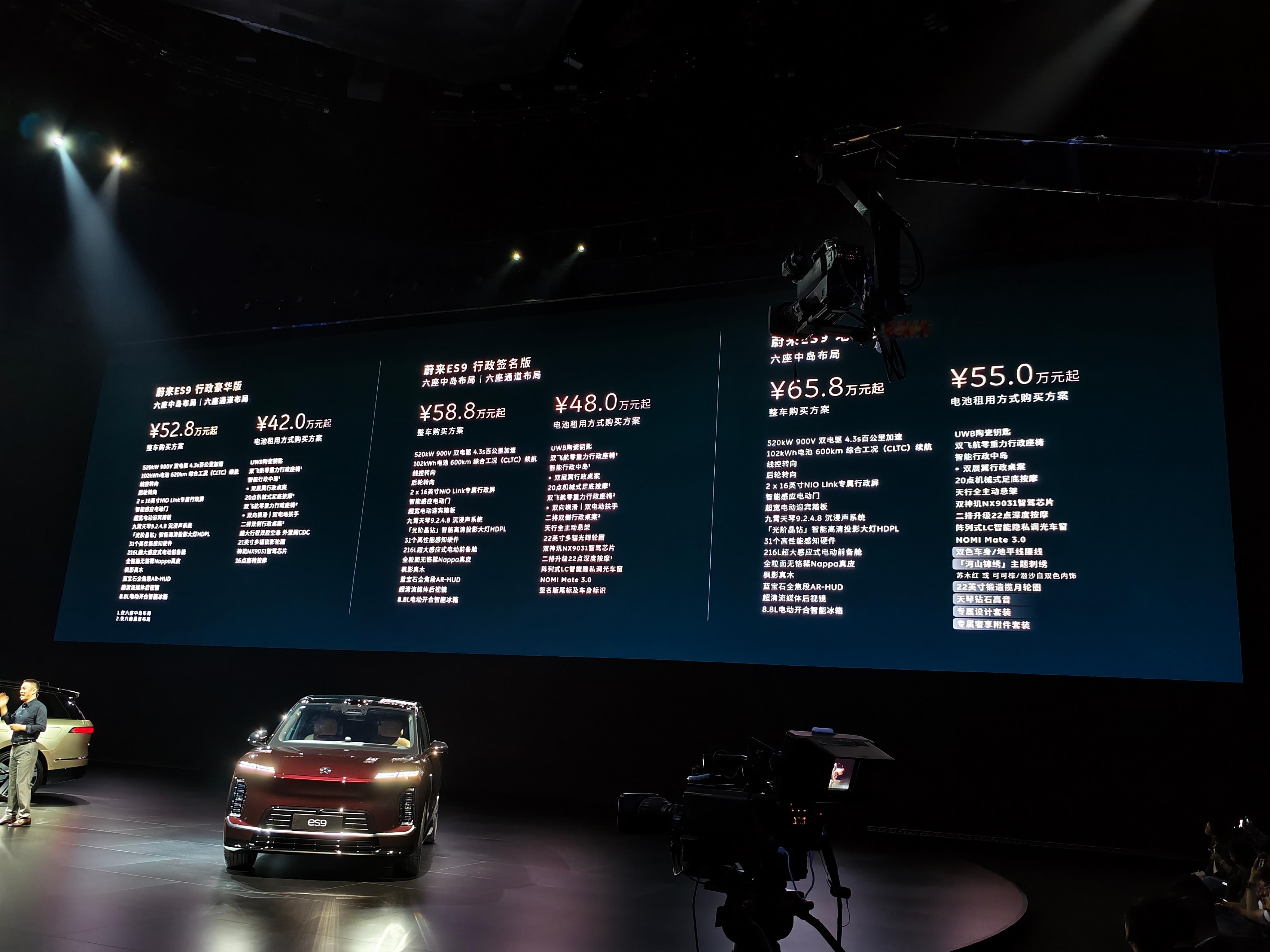 和一起来看蔚来旗舰ES9,预售价52.8、58.8、65.8,租电池方案42、48、55,带来了很多惊喜,比如足底按摩、香槟塔挑战再次升级、转弯半径堪比萤火虫、音响里内置灯光、地平线版本双色车身。