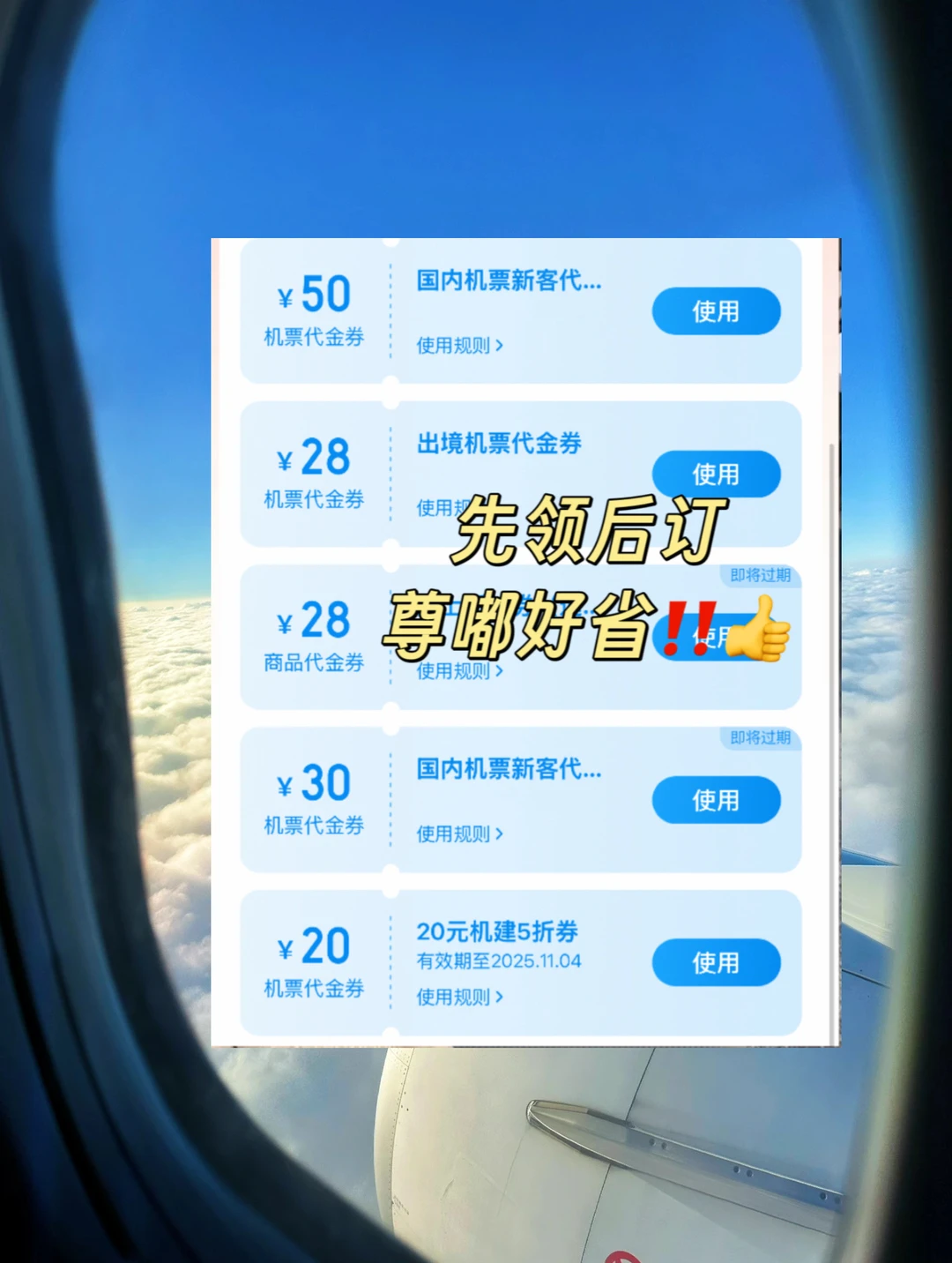 而且宝子们要注意啦💁领 取机票优 惠券可以让你买机票更便宜!这次我就买到了超便宜的一折机票!