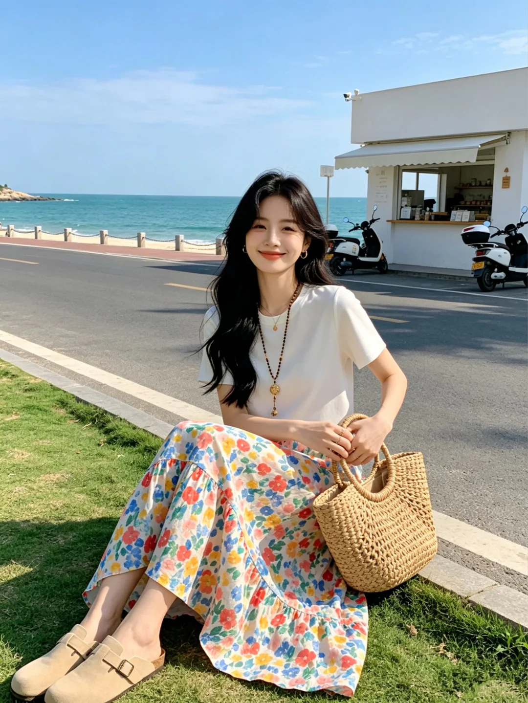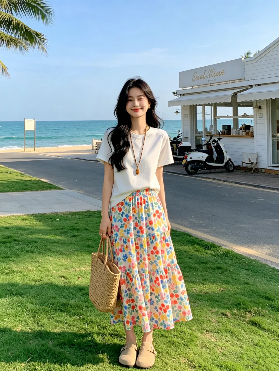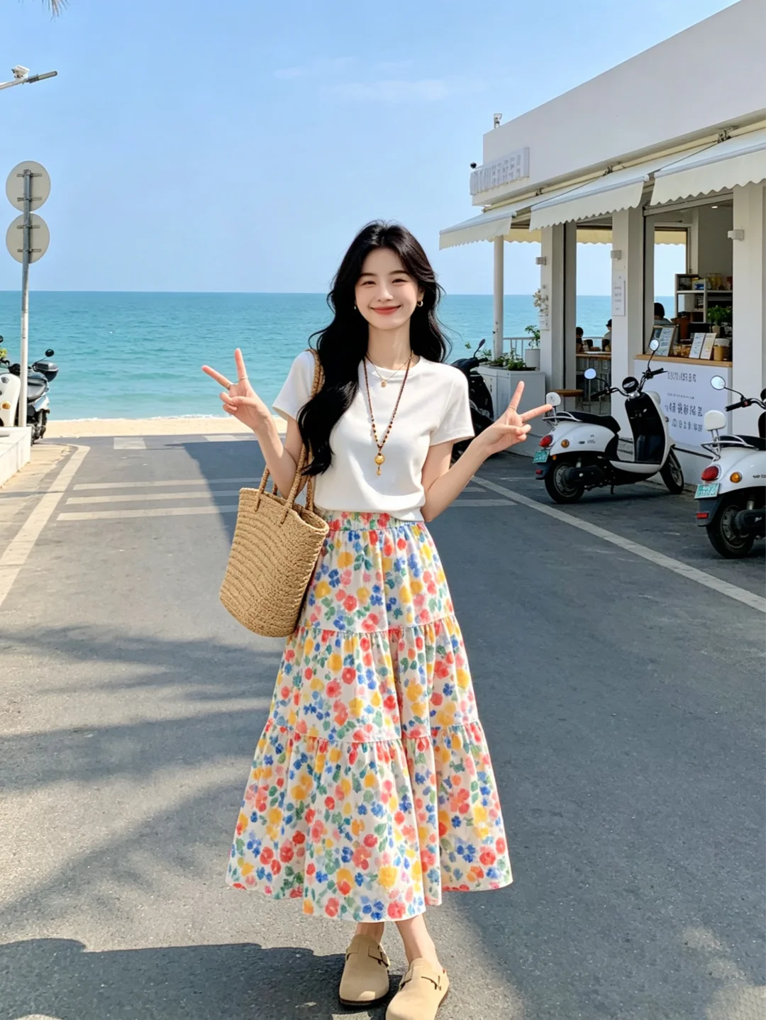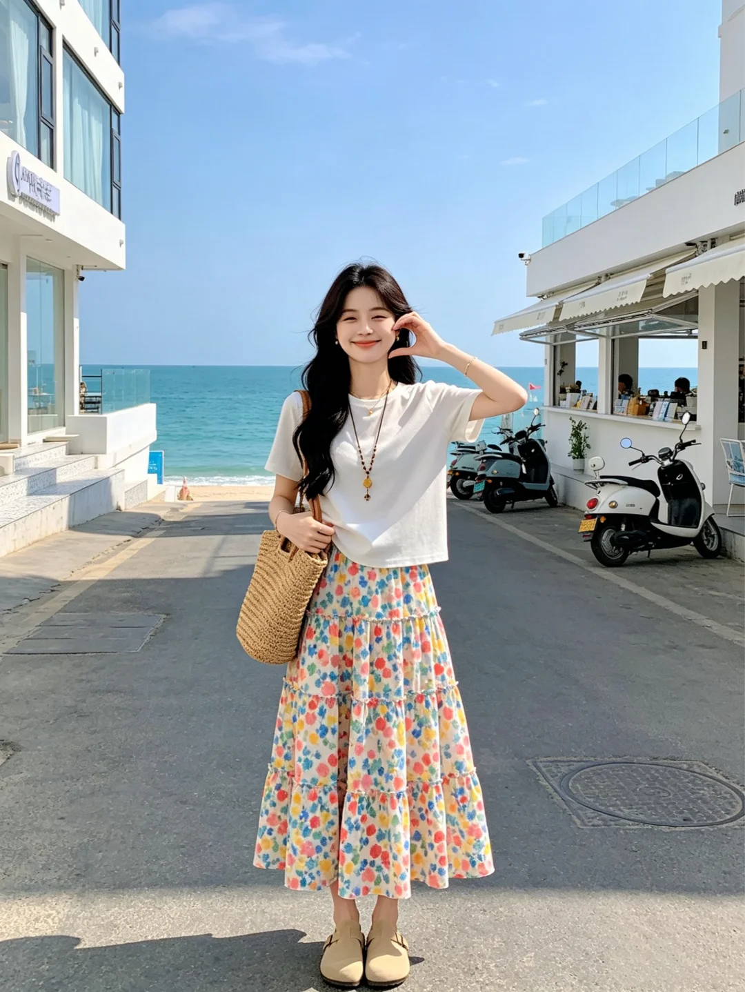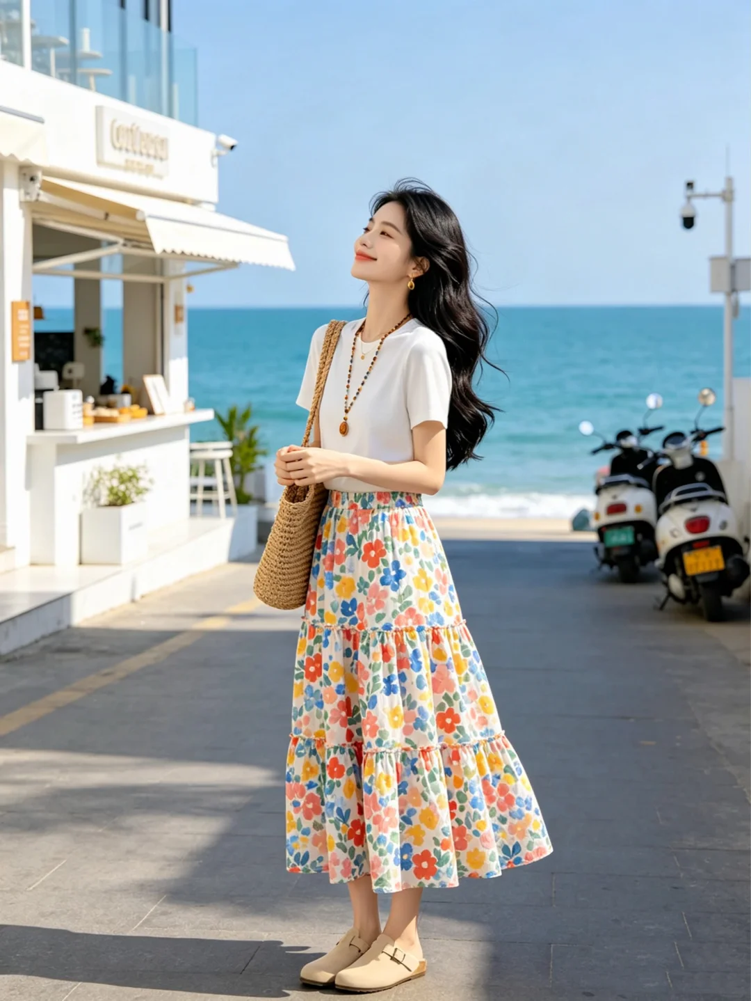 碎花半身裙 温柔穿搭风 碎花裙搭配 穿搭夏季 裙子夏季穿搭 海边度假穿搭 氛围感穿搭夏天 碎花穿搭 韩剧女主夏季穿搭 白色t恤