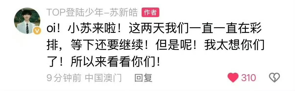 苏新皓彩排空降互动谁被苏新皓彩排碎碎念可爱晕了🥺空降互动也太宠粉!一直认真彩排还惦记着粉丝,舞台狠狠期待住了!oi!小苏来啦~坐等超绝舞台✨