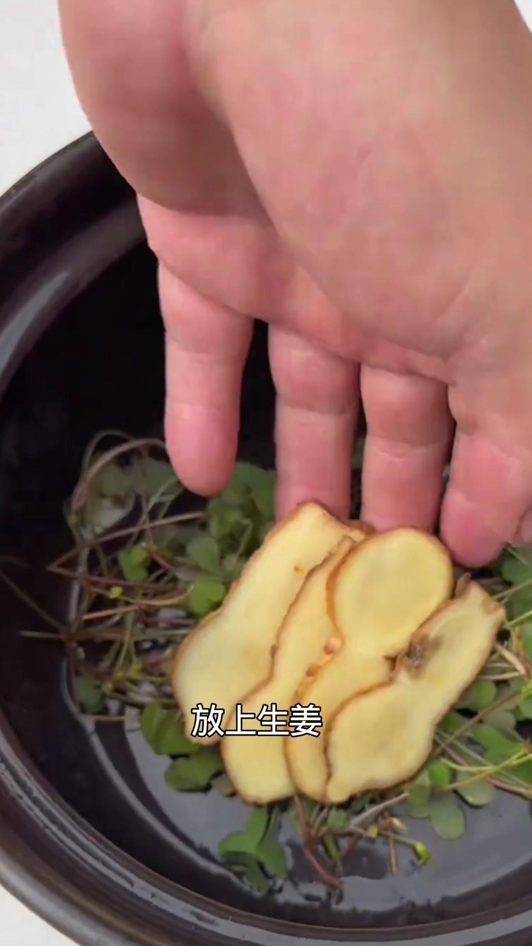 1️⃣将采摘回的黄花酸浆草清洗干净,放入砂锅中,加入生姜和红糖,再倒入适量清水。
