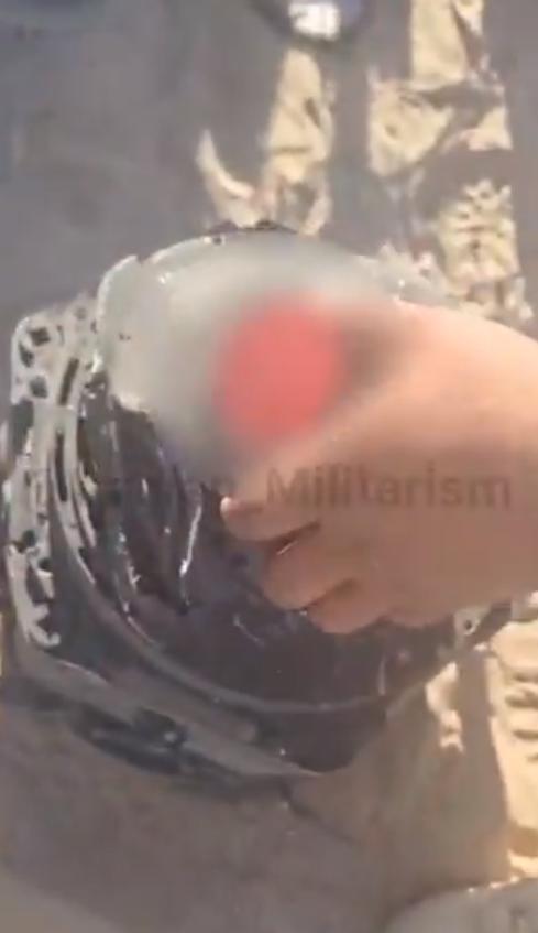 视频中几只手在沙地上摆弄着受损的金属残骸,这是一个带有彩色透镜的球形传感器,估计是美军的无人机上的摄像头元件,这些人正对着这个球形传感器喊到“特朗普先生听到吗?喂!喂!”