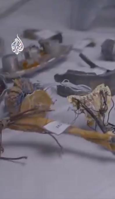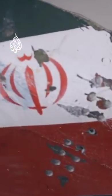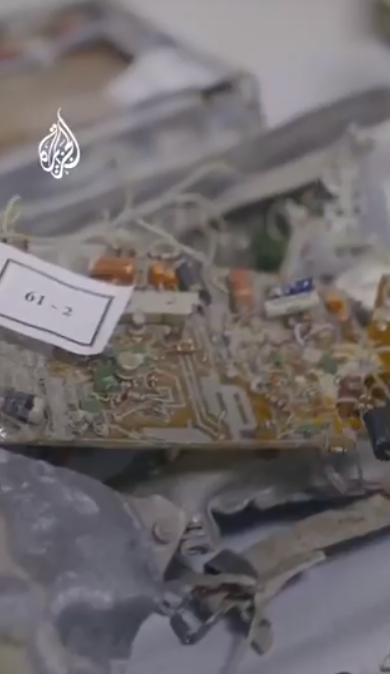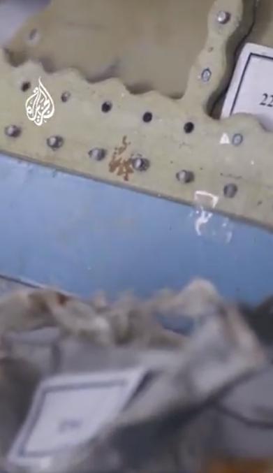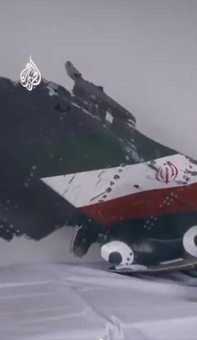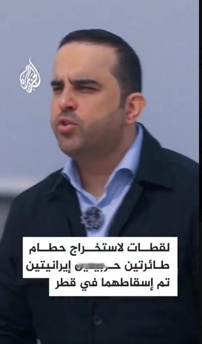 画面显示,从卡塔尔打捞出两架被击落的伊朗战机的残骸。 卡塔尔国家媒体半岛电视台公