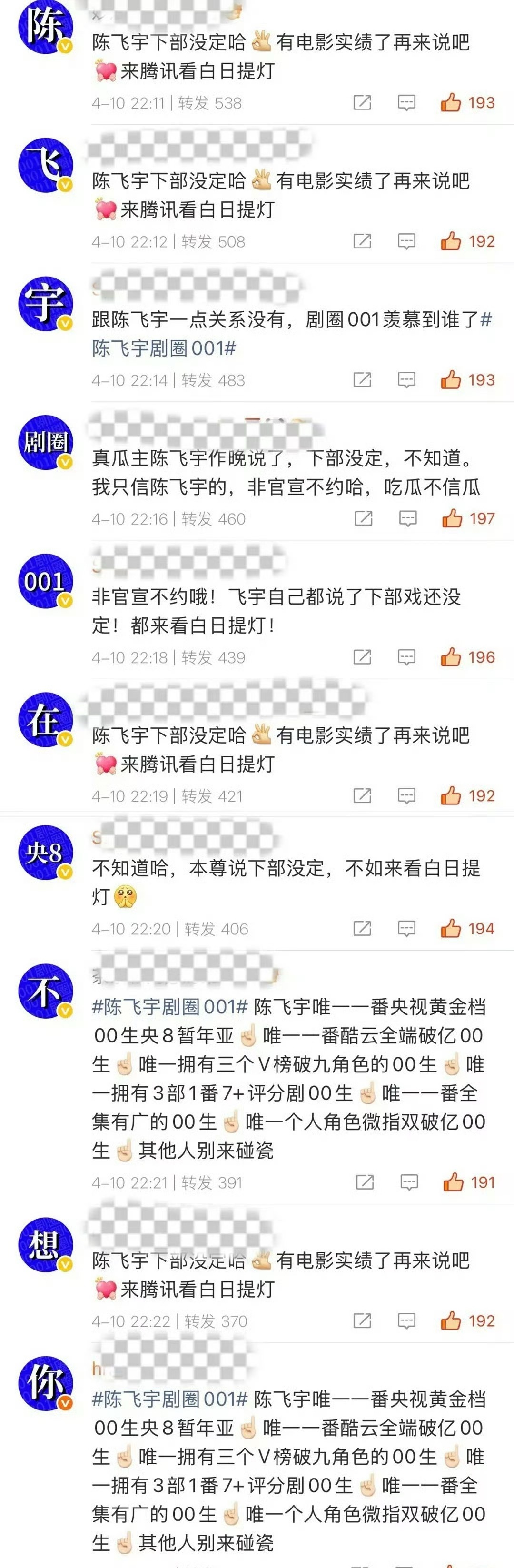 陈飞宇和王星越粉丝在给对方排字,这俩谁是001?