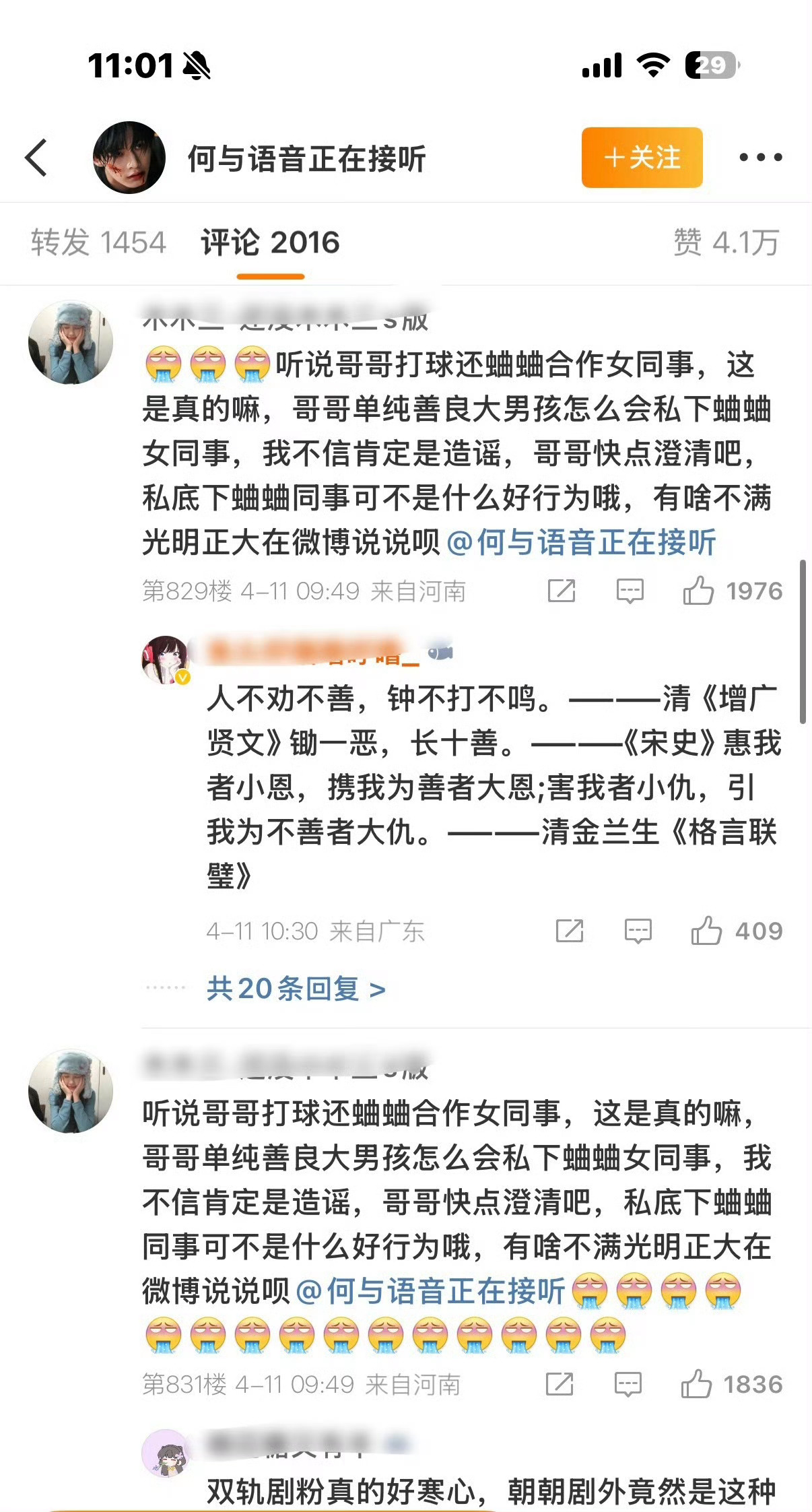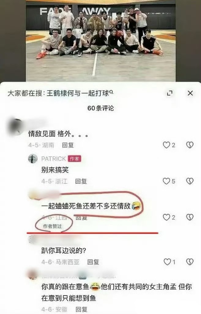2,有人觉得这是虞书欣粉丝先撩,非要去何与和王鹤棣一起打了篮球的帖子评论区说情敌见面,被何与球友打脸又破防。