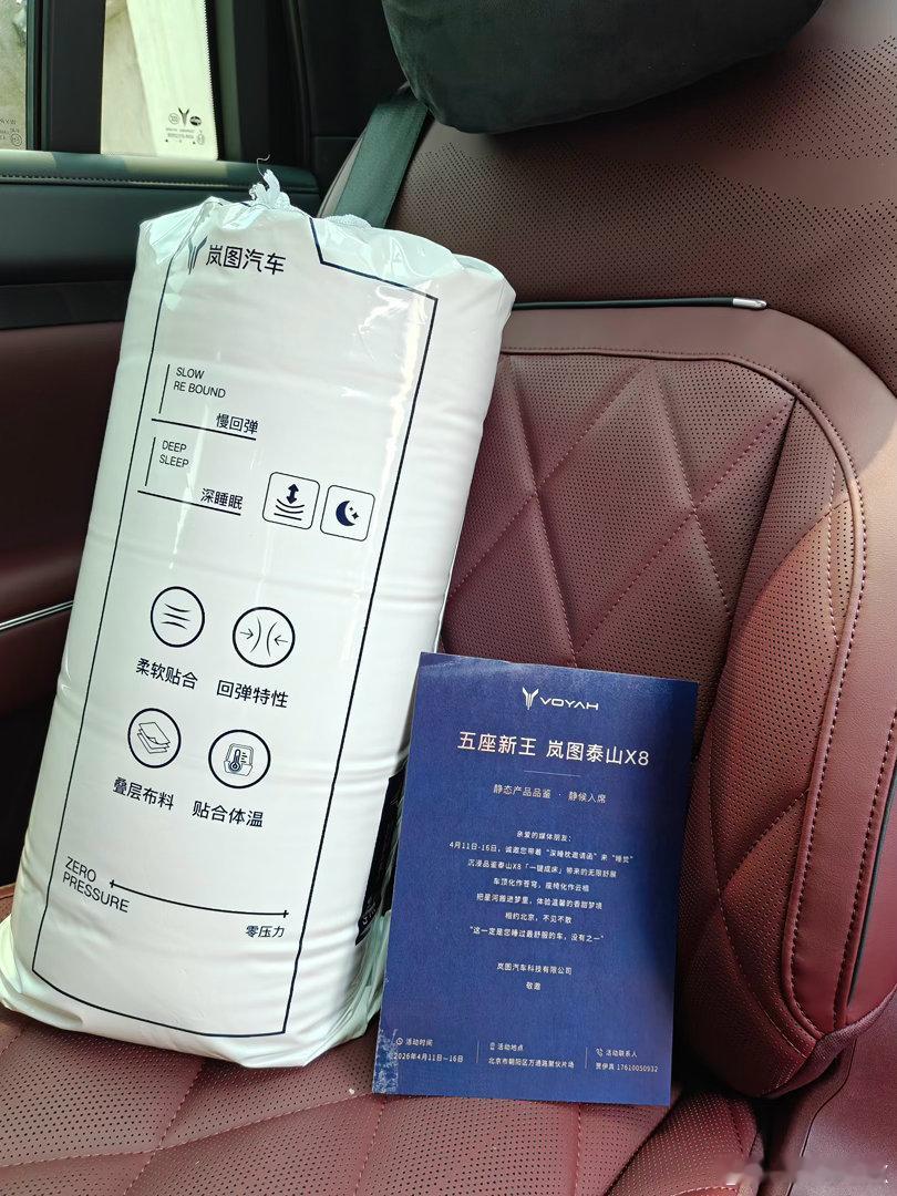 泰山X8的内装越来越谜…..早前都在强调“庭院级”,超级宽阔的车厢空间坐进去会很很很很舒服好吧,在过去拍摄前我还收到一个很舒服的岚图枕头整件事越来越魔幻…是不是真的有那么舒服…岚图泰山X8五座新王一键成床