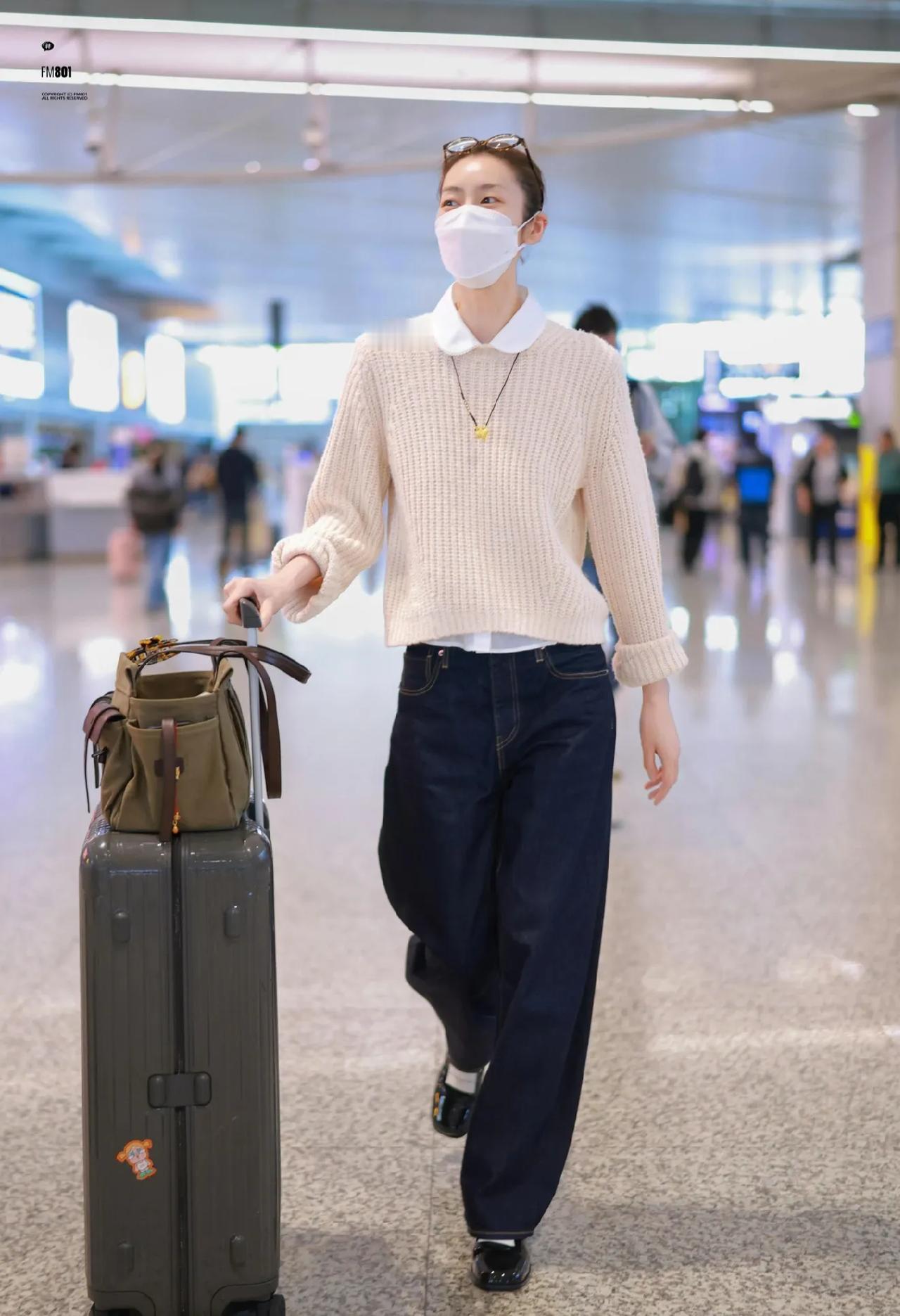 被刘雯这身机场穿搭狠狠种草! 娃娃领针织衫+白衬衫,温柔又减龄, 阔腿牛仔裤+乐福鞋,藏肉显瘦还显高, 军绿托特包实用时髦,日常通勤、出行都能穿, 普通人直接抄作业,轻松拿捏高级松弛感! 刘雯 通勤穿搭 日常穿搭 松弛感穿搭