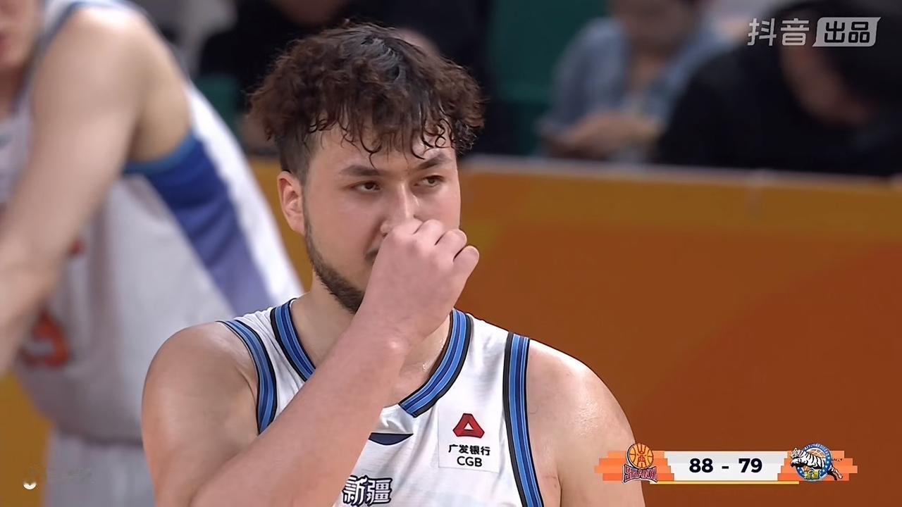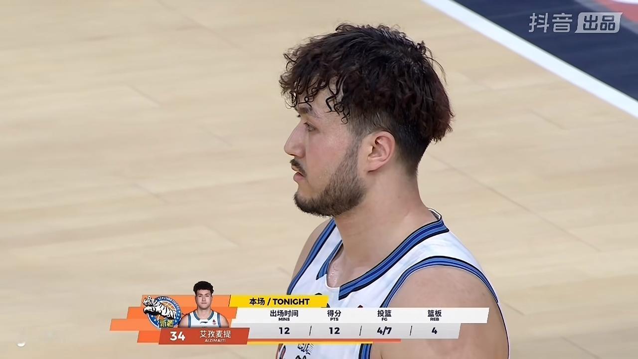 但是这场比赛,新疆飞虎男篮以前很少上场的艾孜买提打了26分钟,13投7中,得到了全队最高的20分,并且还抢到了6个篮板。