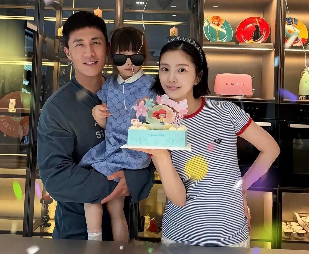 杜淳在家为女儿过生日,王灿晒三口之家合影,爸爸抱着女儿,妈妈亲吻孩子侧脸,温馨又