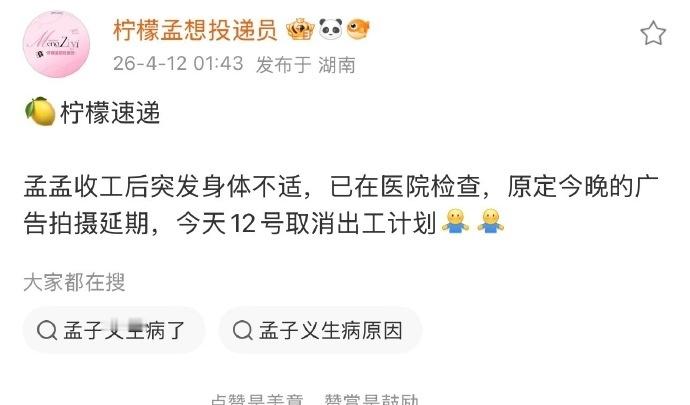 孟子义12号取消出工计划孟子义真的太拼了孟子义真的太拼了,孟子义12号取消出工计划,两年休息两天,咱就说孟姐多多注意休息,说好的要做减法的哦,期待住和健康的孟姐的多多见面啊~