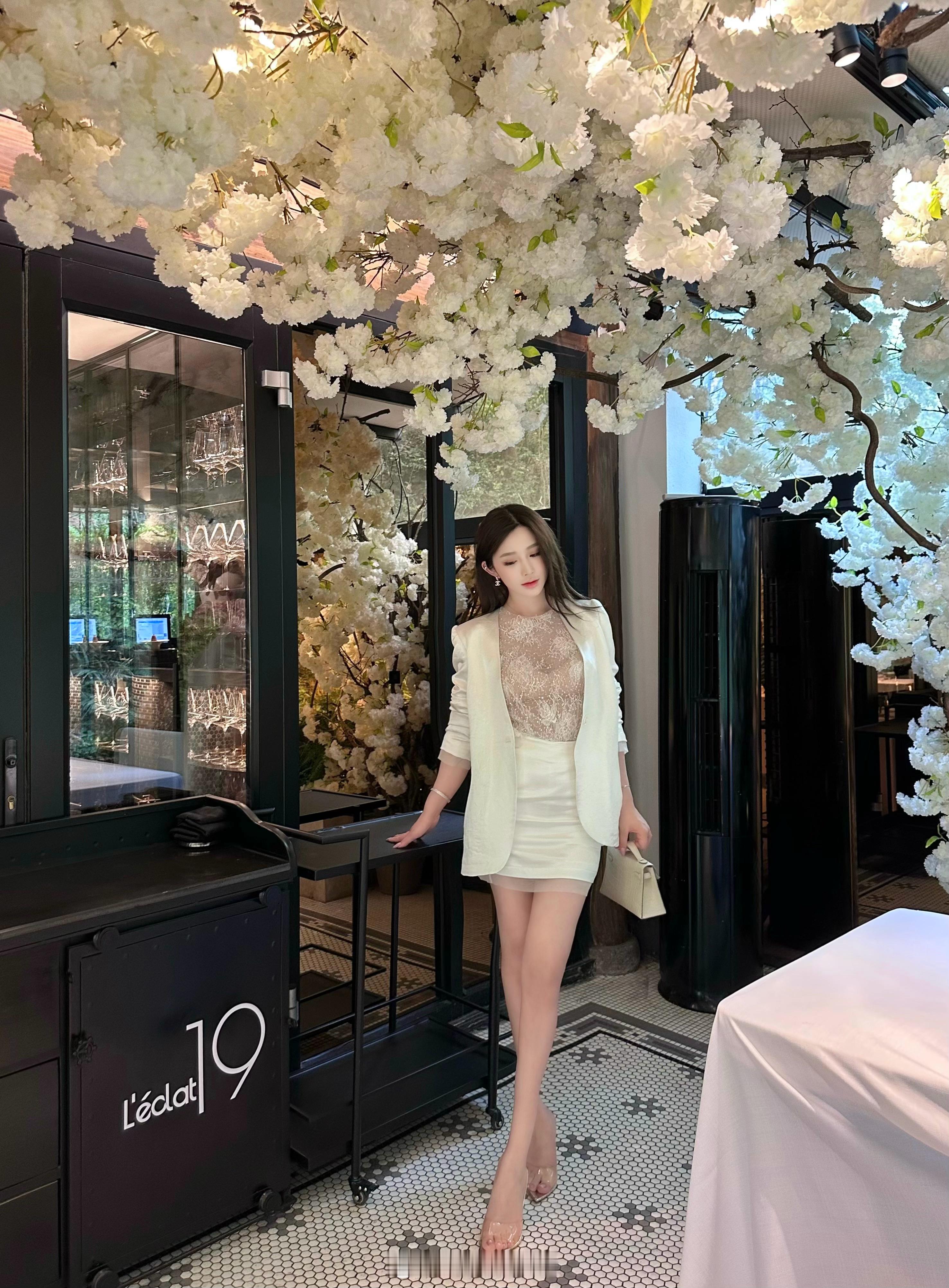 🤍🫶🏻内搭的蕾丝背心是定制面料😽超精致的 外套和半裙用的都是薄款醋酸面料,很丝滑 半裙和外套袖口都拼接了欧根纱面料都是细节满满 这套必须要自留哒 🥂