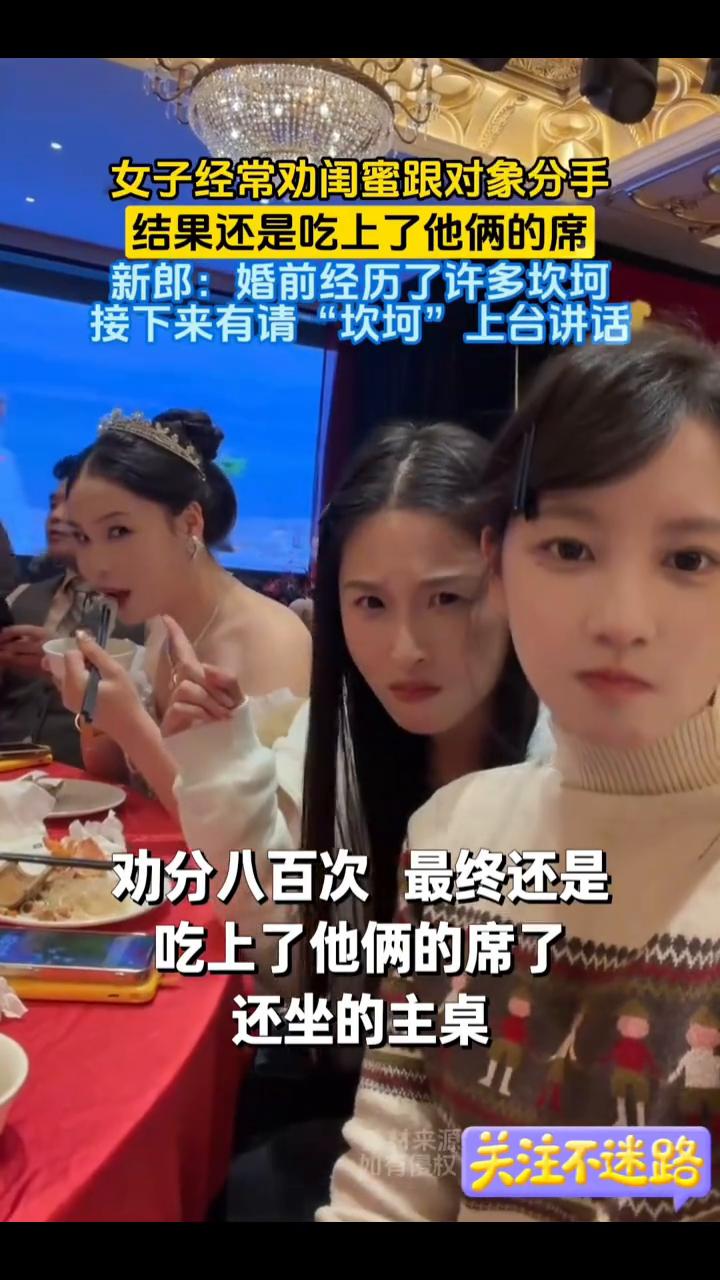 女子经常劝闺蜜跟对象分手,结果还是吃上了他俩的席。新郎:婚前经历了许多坎坷。 接
