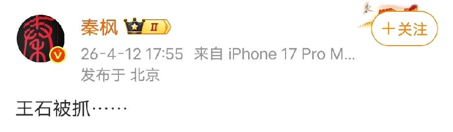 4月12日,某博平台粉丝上千万的博主秦枫发布博文称“王石被抓……”,据资料显示,该博主身份是资深记者,且任香港某台台长,身份还是挺专业的,突然发布这样的消息,应该也不是随口就来的调侃。