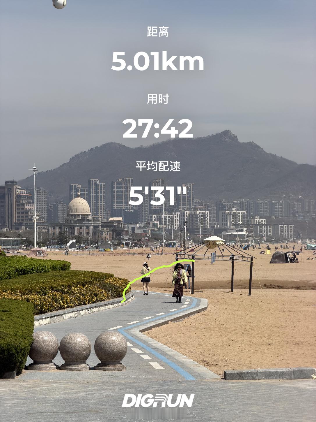 中午来海边跑个步5km配速来到了531跑步小趴菜又pb了哈哈哈🤓