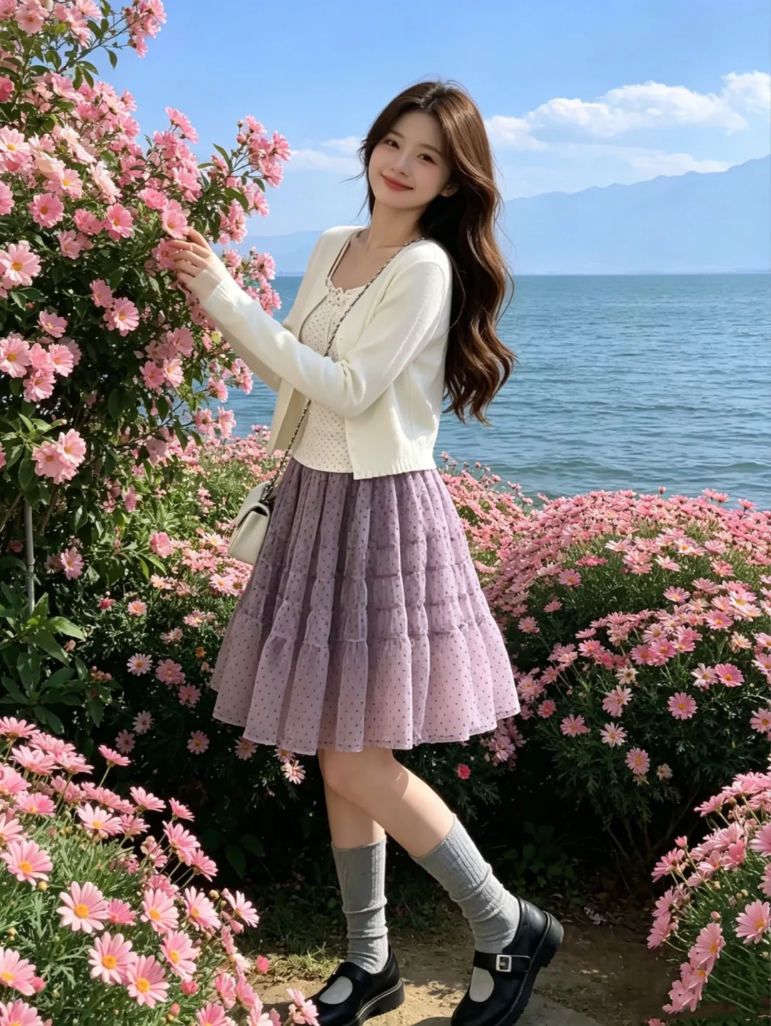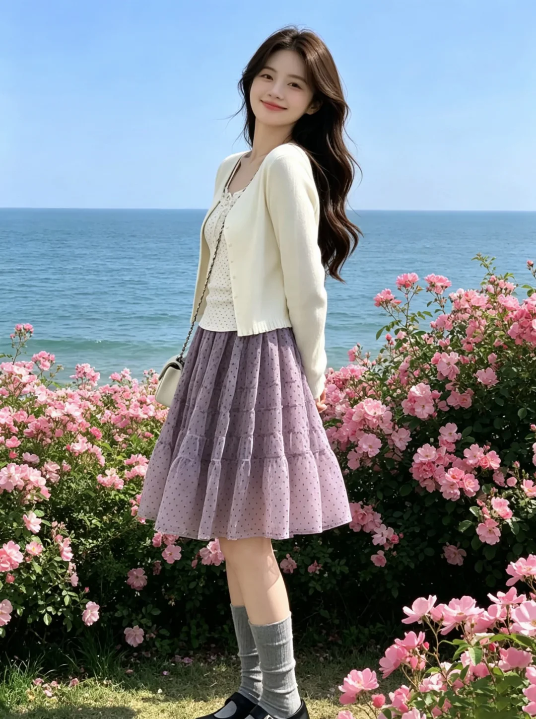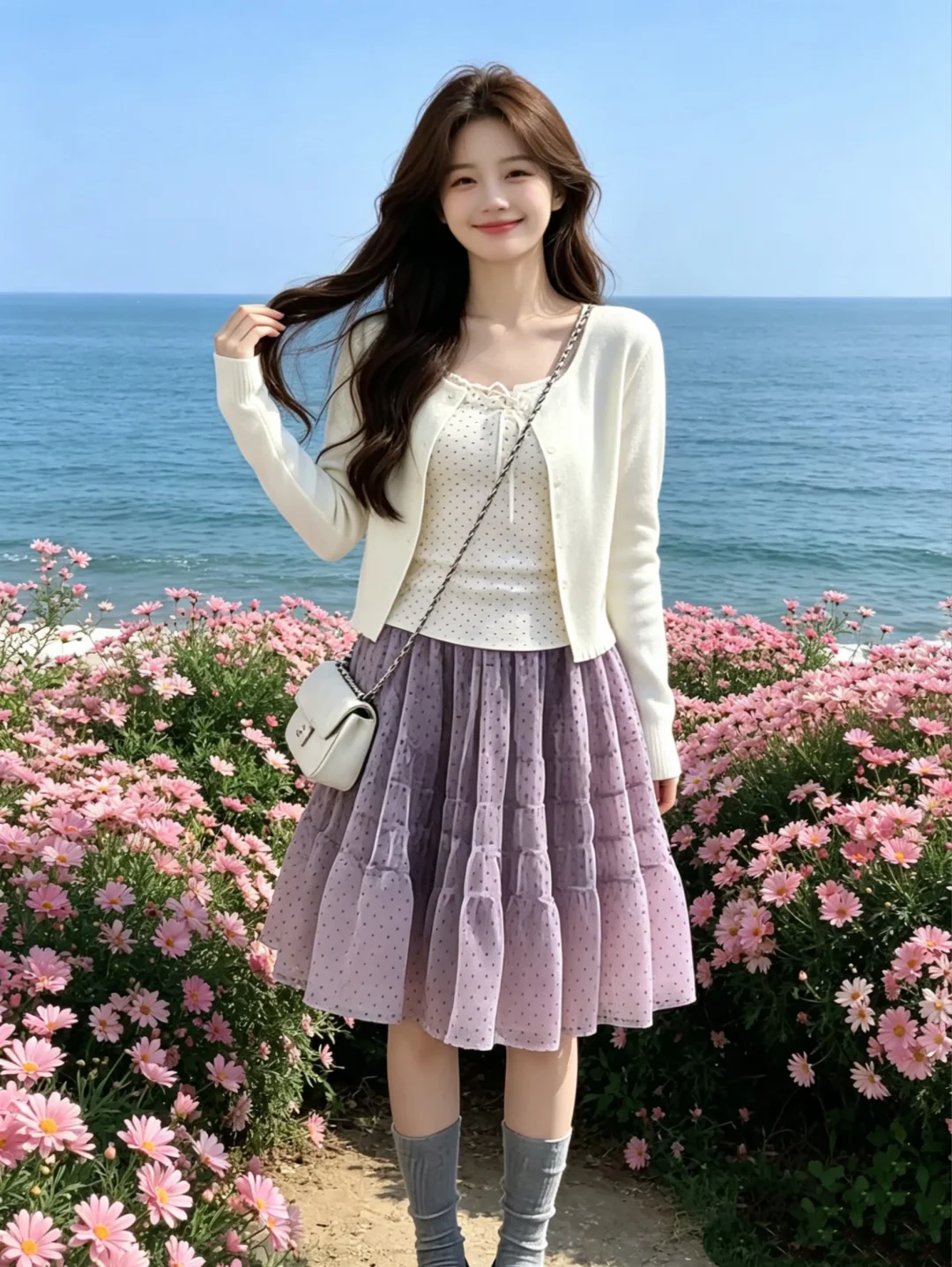 温柔穿搭风 紫色系穿搭 温柔气质风穿搭 针织衫 波点半裙 紫色的浪漫 ootd穿搭 春暖花开温柔风穿搭 人间绝绝紫