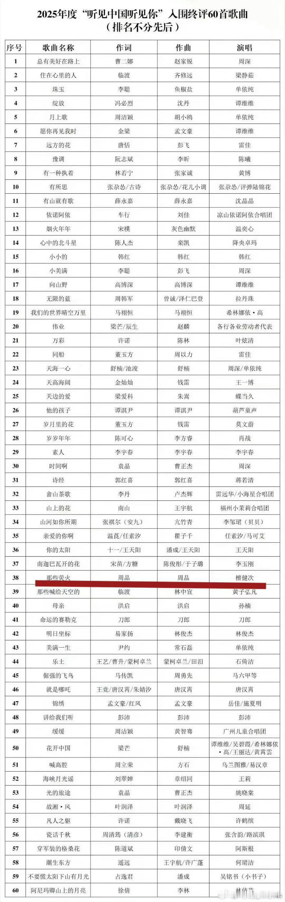 檀健次那些荧火入围2025年度优秀歌曲檀健次的《那些荧火》入围2025年度“听见中国听见你”优秀歌曲终评,影视歌全面开花,全领域制霸的又一力证。