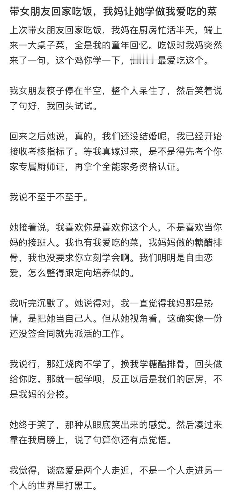 带女朋友回家吃饭,我妈让她学做我爱吃的菜