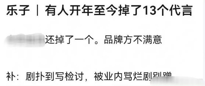 哪个艺人短短3个月的时间,直接掉了13个商务?