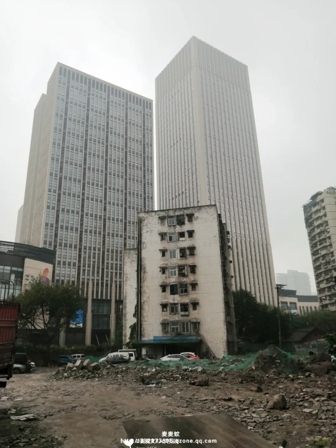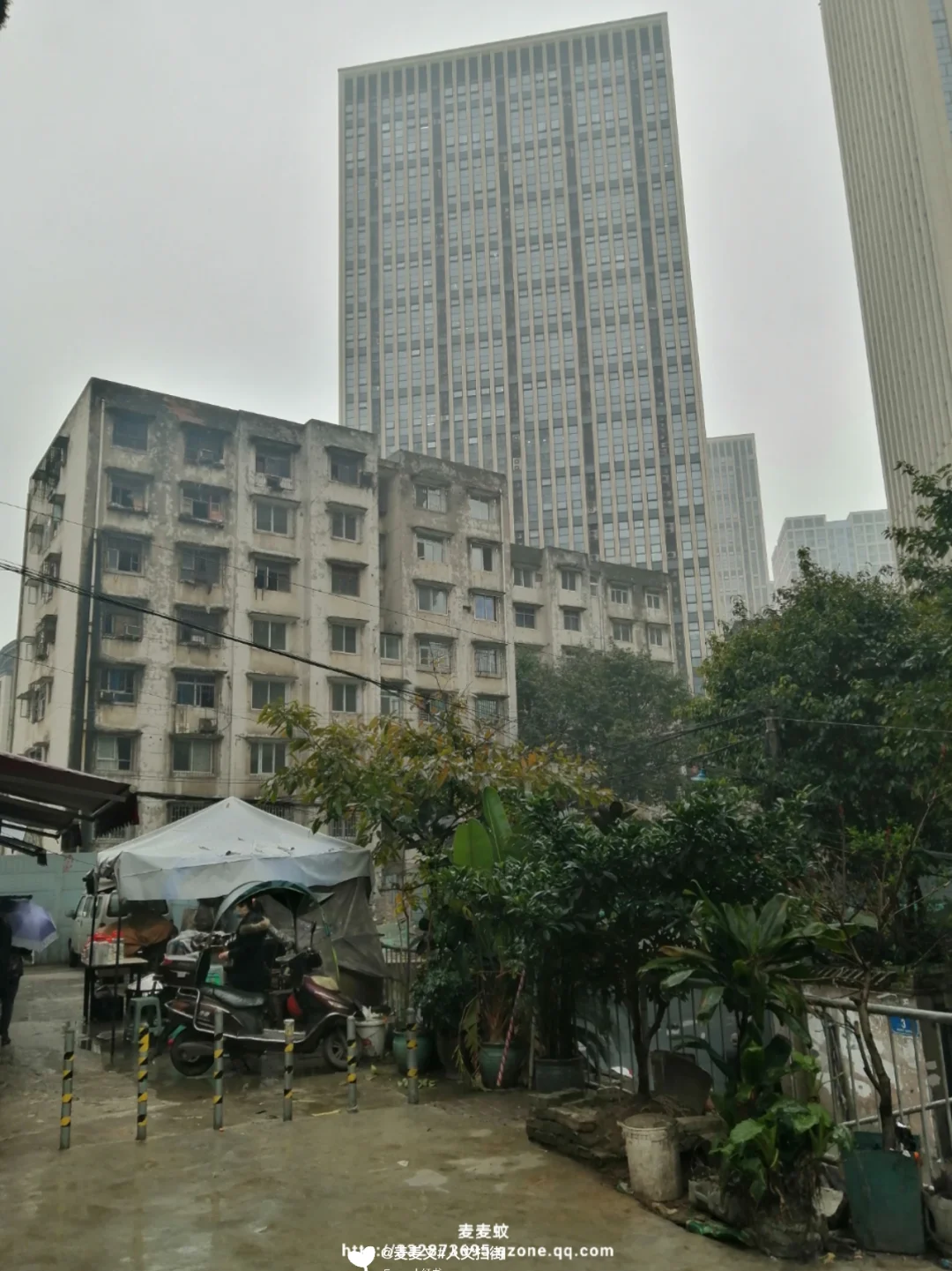 走在茶亭村的老街巷里,青灰瓦的平房、斑驳的老居民楼,与身后拔地而起的摩天大楼形成强烈对冲。雨天的石板路泛着水光,巷子里堆着生活杂物,老住户们在屋檐下闲话家常,楼梯间飘着饭菜香,仿佛时间在这里按下了慢放键。曾经的古驿道上,有员外施茶的善举;如今的老巷里,是重庆人最鲜活的市井日常。