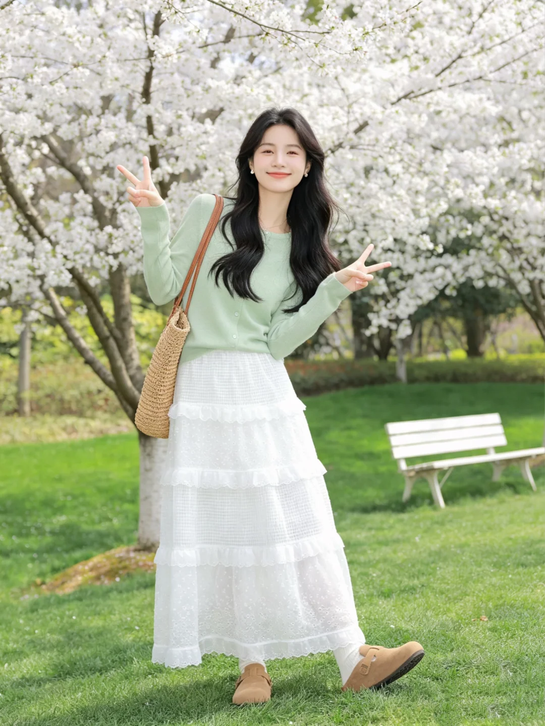 浅春系穿搭 拥抱春天的一百种方式 纱纱裙搭配 温柔穿搭风 踏青穿搭不重样 蛋糕裙 春天穿搭
