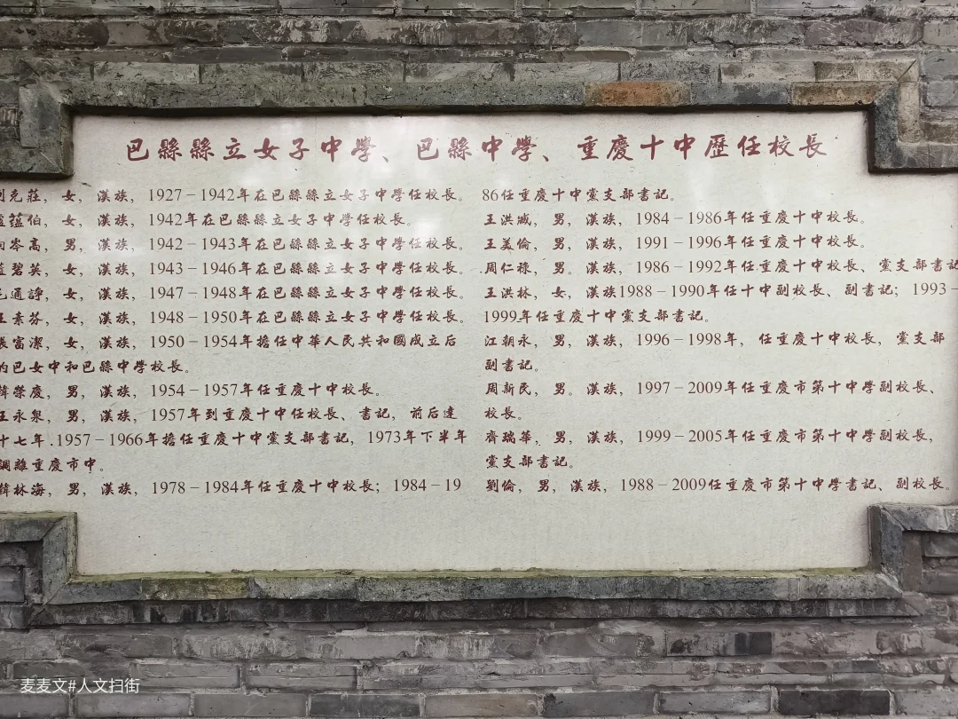 1904年登瀛书院奠基,1927年升格为巴县女子中学,1953年正式定名重庆十中,曾是重庆十一所完全中学之一。抗战时期为避轰炸,从渝中区辗转至南温泉仙女洞旁,从此与这片山水相融。2009年与三十四中合并,却以“十中记忆公园”的形式,留住了鲜活的校史痕迹。