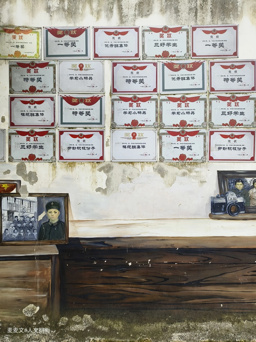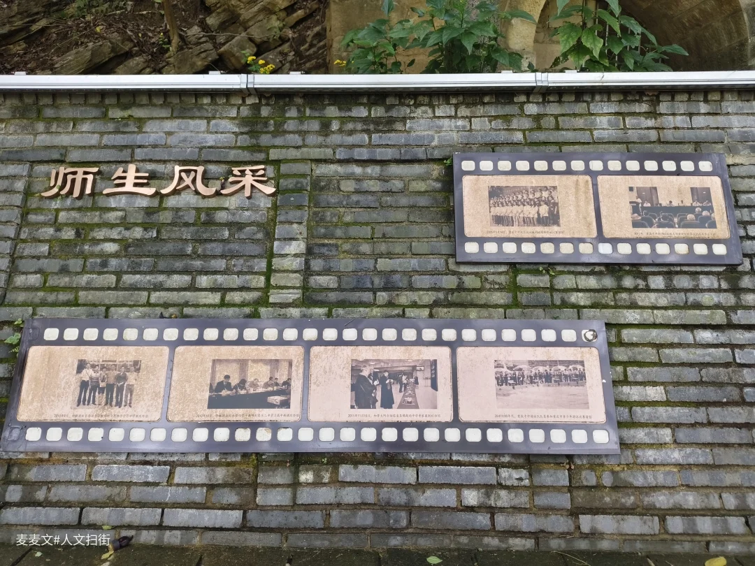 石阶蜿蜒向上,“十中故事”的标识旁,90年代校门的老照片静静陈列,斑驳的砖墙复刻着旧时光。三尺讲台前,老旧课桌椅带着岁月磨痕,黑板上未擦净的解题思路、墙上贴满的三好学生奖状,瞬间唤醒校园记忆。1959年毕业合影、泛黄的校园变迁胶片展,每一处细节都在诉说桃李芬芳。