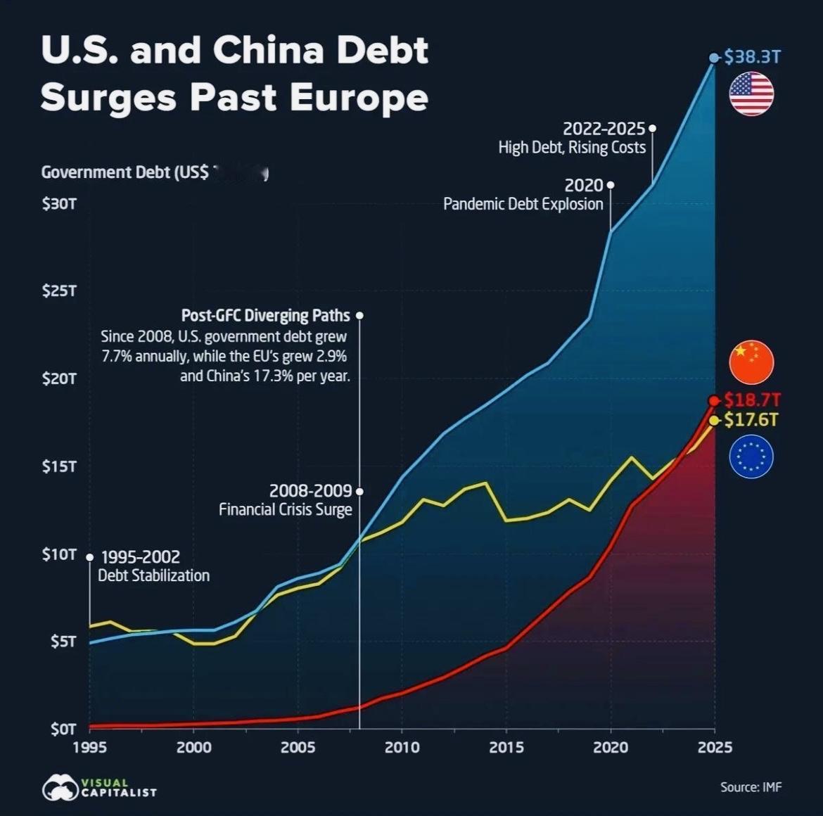 全球债务总额已经超过348万亿美元,是2025年全球GDP总额的297%。