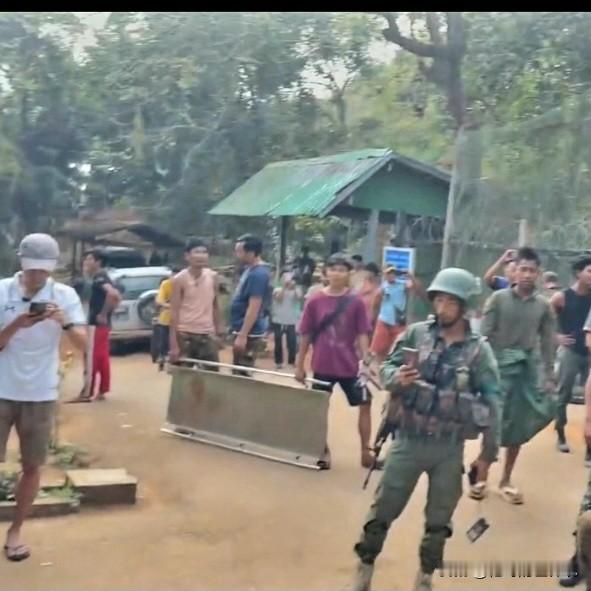 4月14日,一帮僳僳族民团手持缅军旗帜,欢呼雀跃的替缅军打扫战场。为了鼓舞士气,僳僳民团首领在缅军授意下,摆放了三把无枪托和五把抠不动的机枪作为战利品。