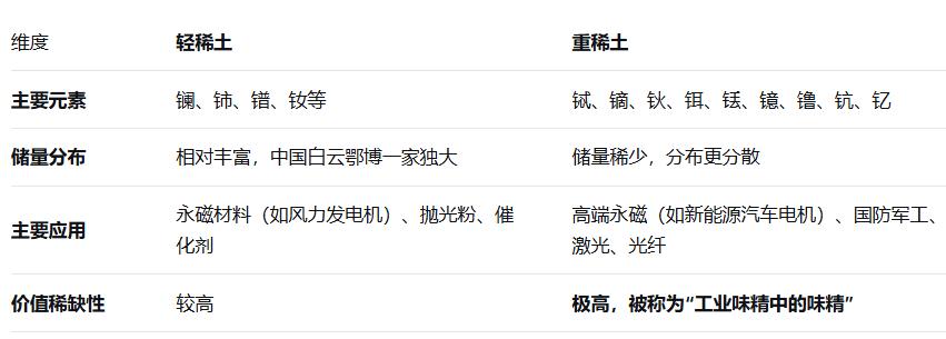 稀土分为轻稀土和重稀土,都很重要,但相比之下,重稀土更为珍贵。例如:镝、铽、钇等是导弹制导系统、雷达、声呐、战斗机发动机、核潜艇等尖端装备的核心材料。
