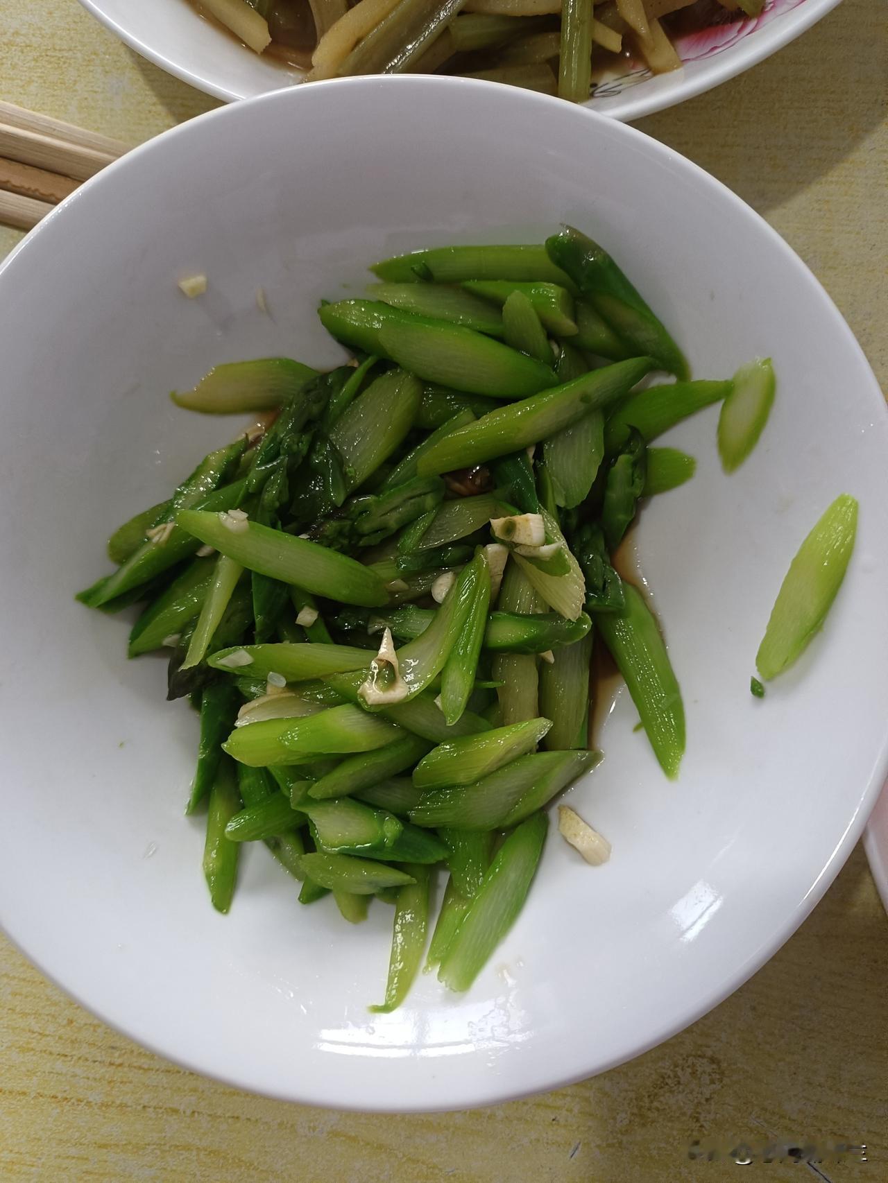 昨天我在菜园里掰了几根芦笋,本来想用芦笋炒鸡蛋吃,但又怕不好吃,最后听了豆包的建议,我选了一个比较简单的做法,凉拌芦笋,拌的时候放了一点蒜末儿。