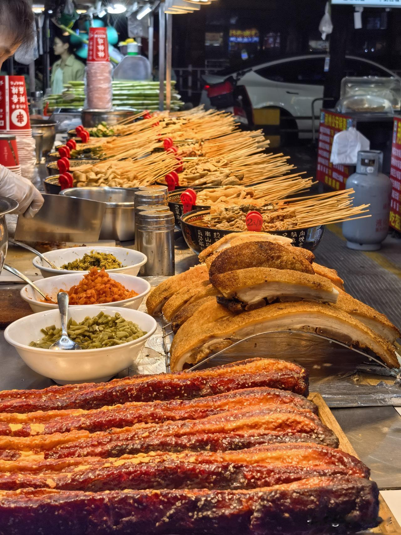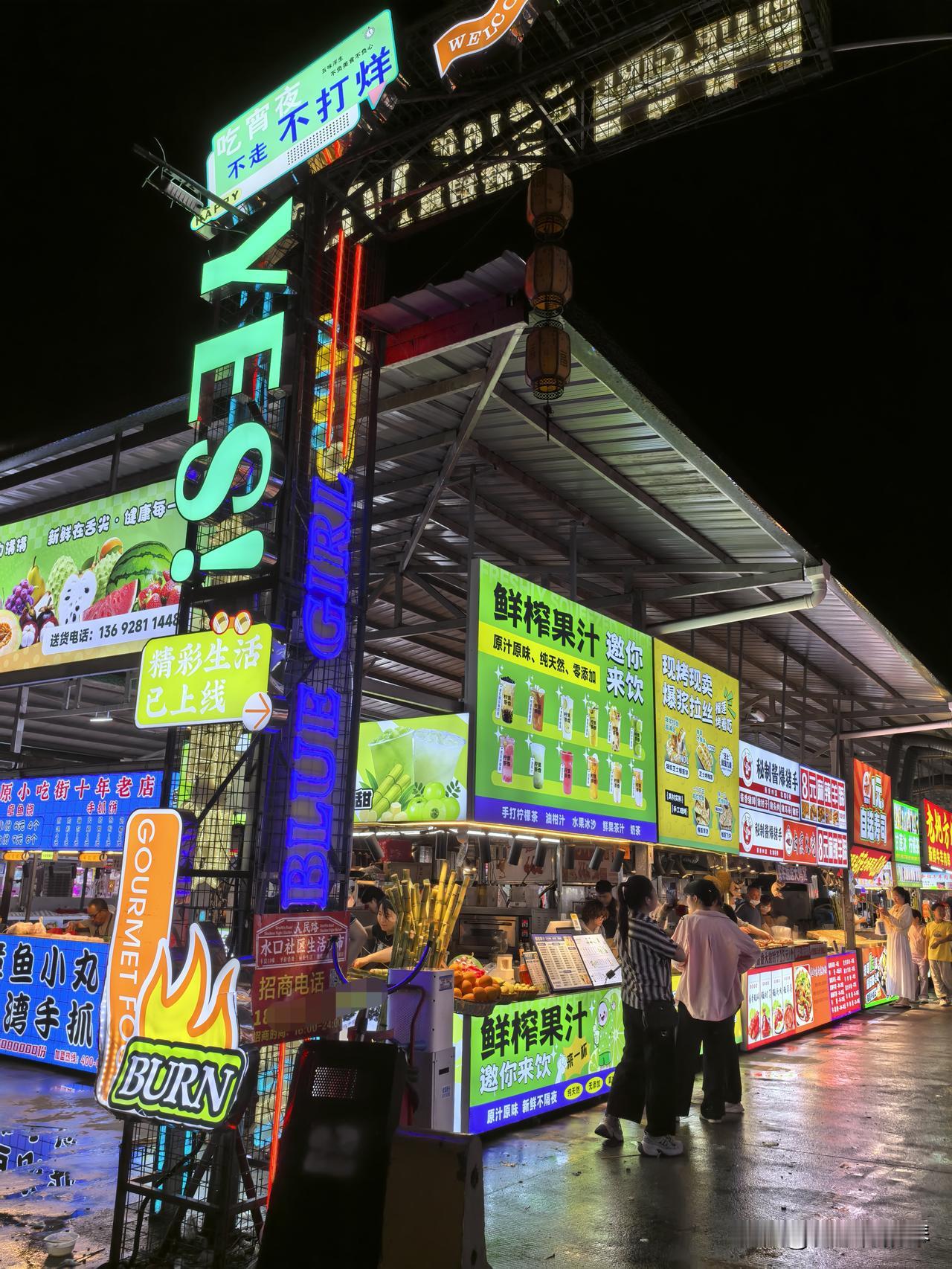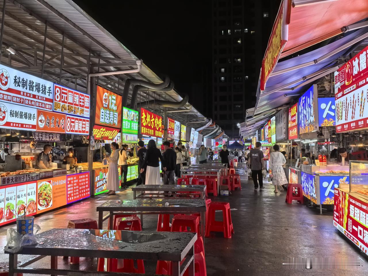 整片夜市还挺大,摊位很集中,可以慢慢看看有没自己喜欢的小吃。全国各地小吃,还有水果,果汁奶茶🧋,可选性蛮高的,还看到了广西螺蛳粉,卖的比广西贵多了。