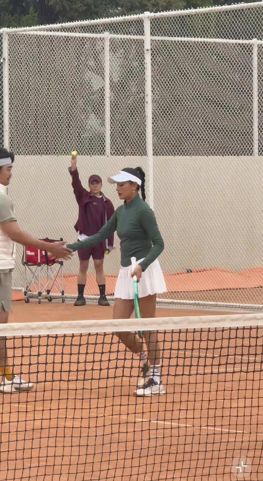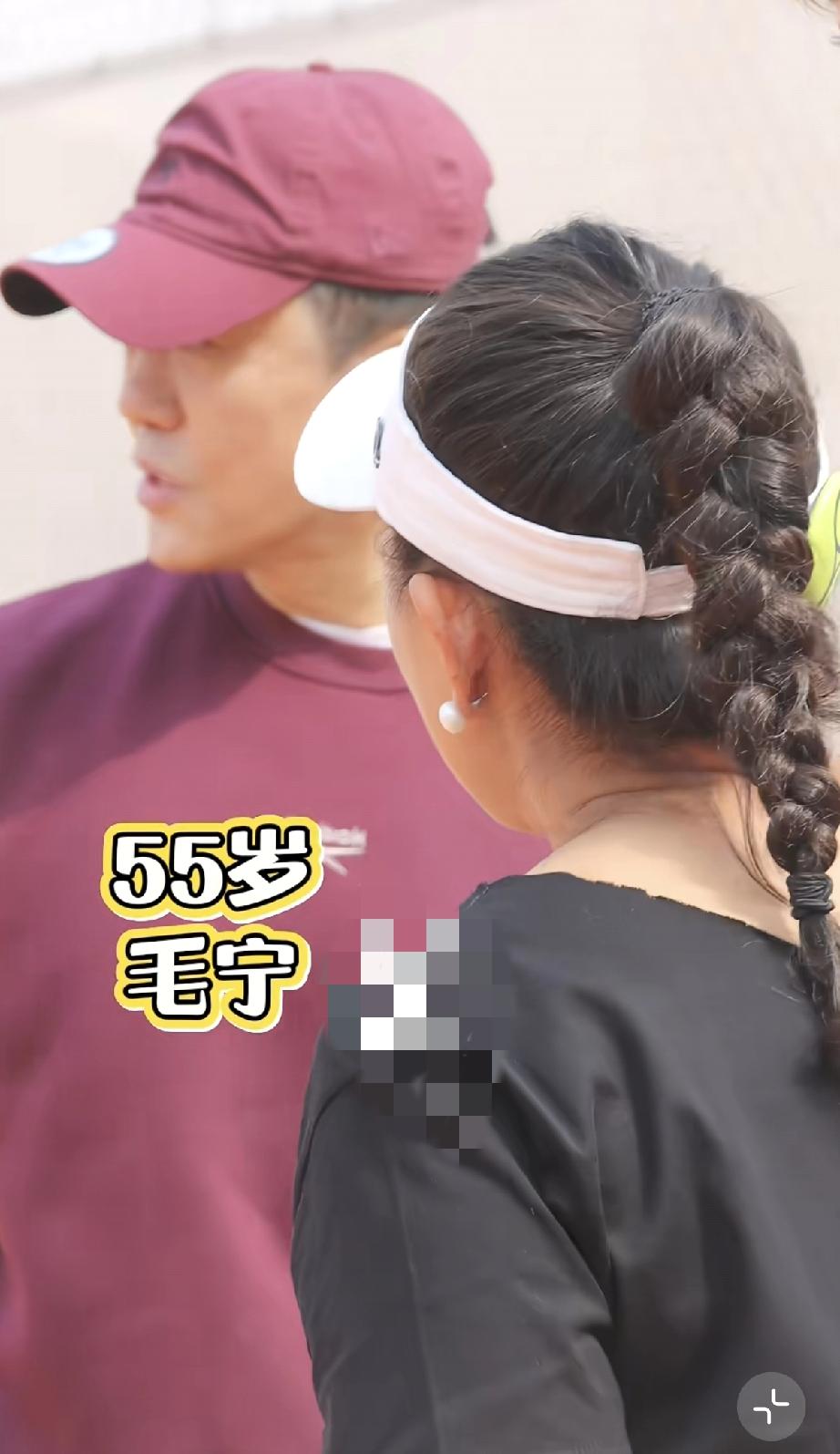 当瞿颖在球场挥汗如雨打网球的时候,后面有一个球童给他们扔球,起初粉丝们不认识,以为是哪个大叔,后面一看是毛宁。
